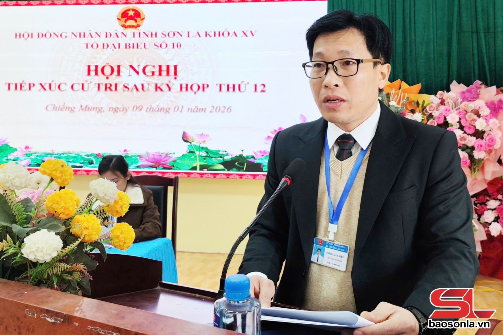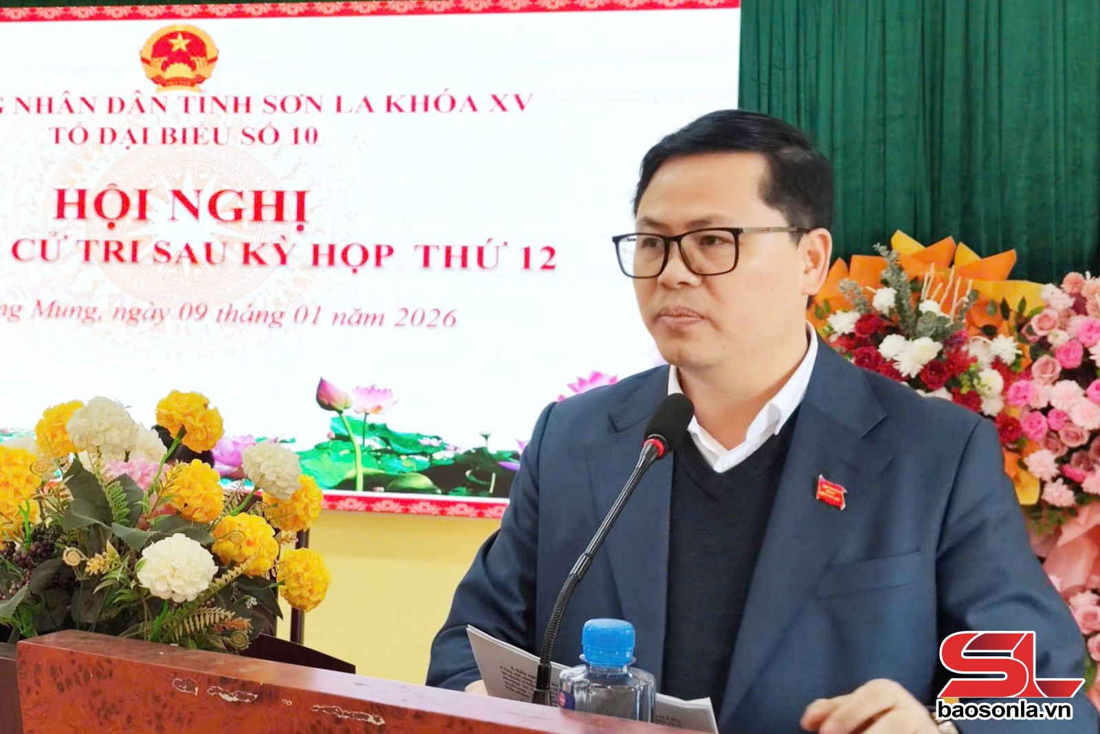 Tại hội nghị, đại diện Tổ đại biểu HĐND tỉnh đã báo cáo tóm tắt kết quả Kỳ họp thứ mười hai, Kỳ họp chuyên đề thứ 38 HĐND tỉnh khóa XV. Lãnh đạo UBND xã Chiềng Mung báo cáo tình hình phát triển kinh tế - xã hội năm 2025.