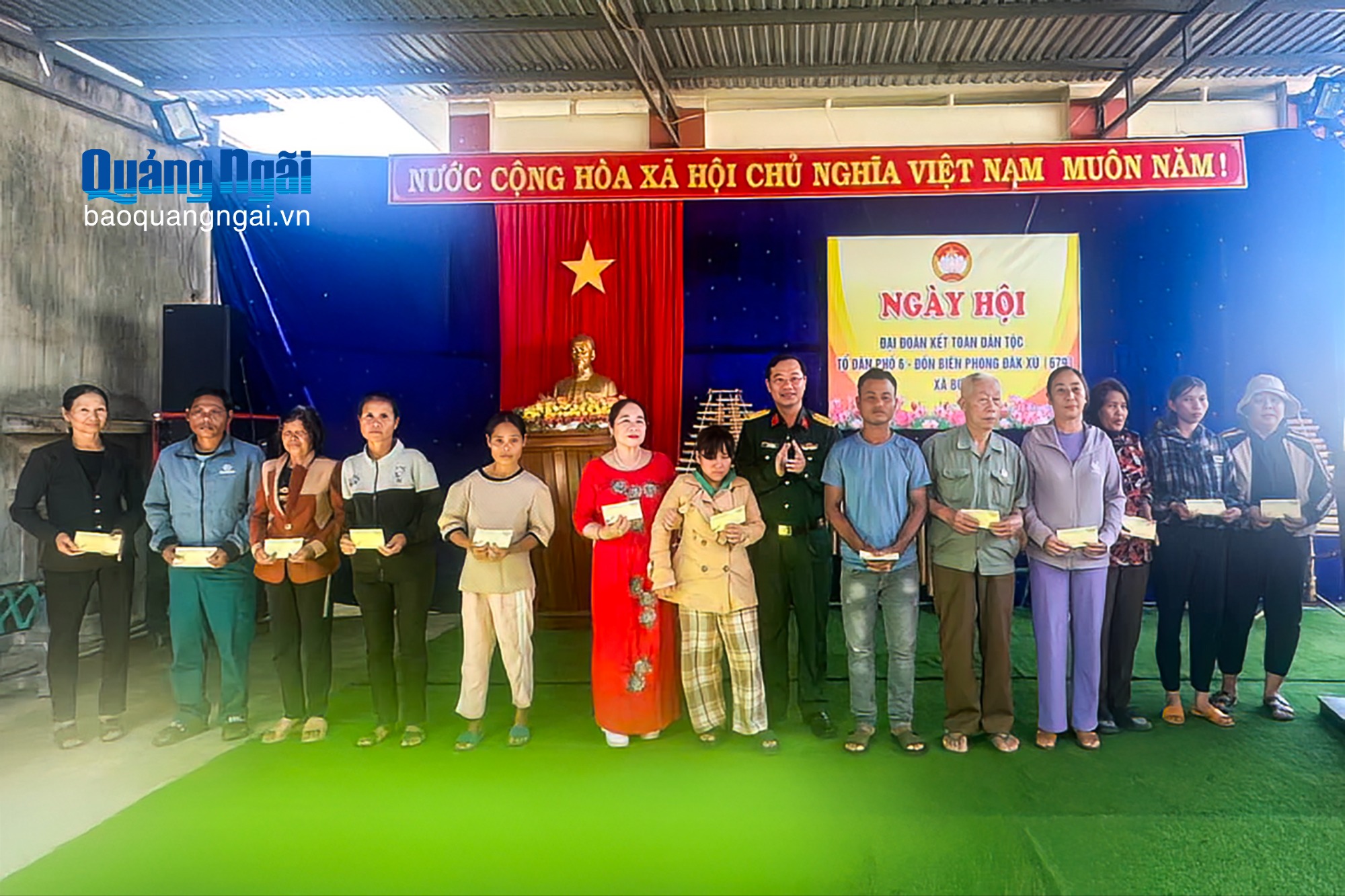 Sau phần lễ, các đại biểu đến thăm, tặng quà một số hộ gia đình trên địa bàn và cùng nhân dân tham gia giao lưu văn nghệ, ẩm thực, tạo không khí đoàn kết, vui tươi, thắm tình quân - dân nơi biên giới.