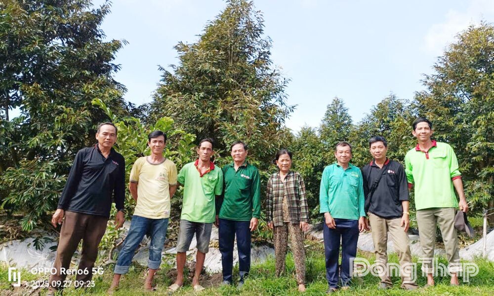 Trước tình cảnh đó, các thành viên đã nhanh chóng đề xuất và thành lập Tổ đồng hành khởi nghiệp Phú Hương Hội quán, vào tháng 4-2025, gồm 10 thành viên. Tổ hỗ trợ toàn diện, từ khâu kỹ thuật đến nhân công, giúp gia đình cô Hương chăm sóc vườn sầu riêng chu đáo.