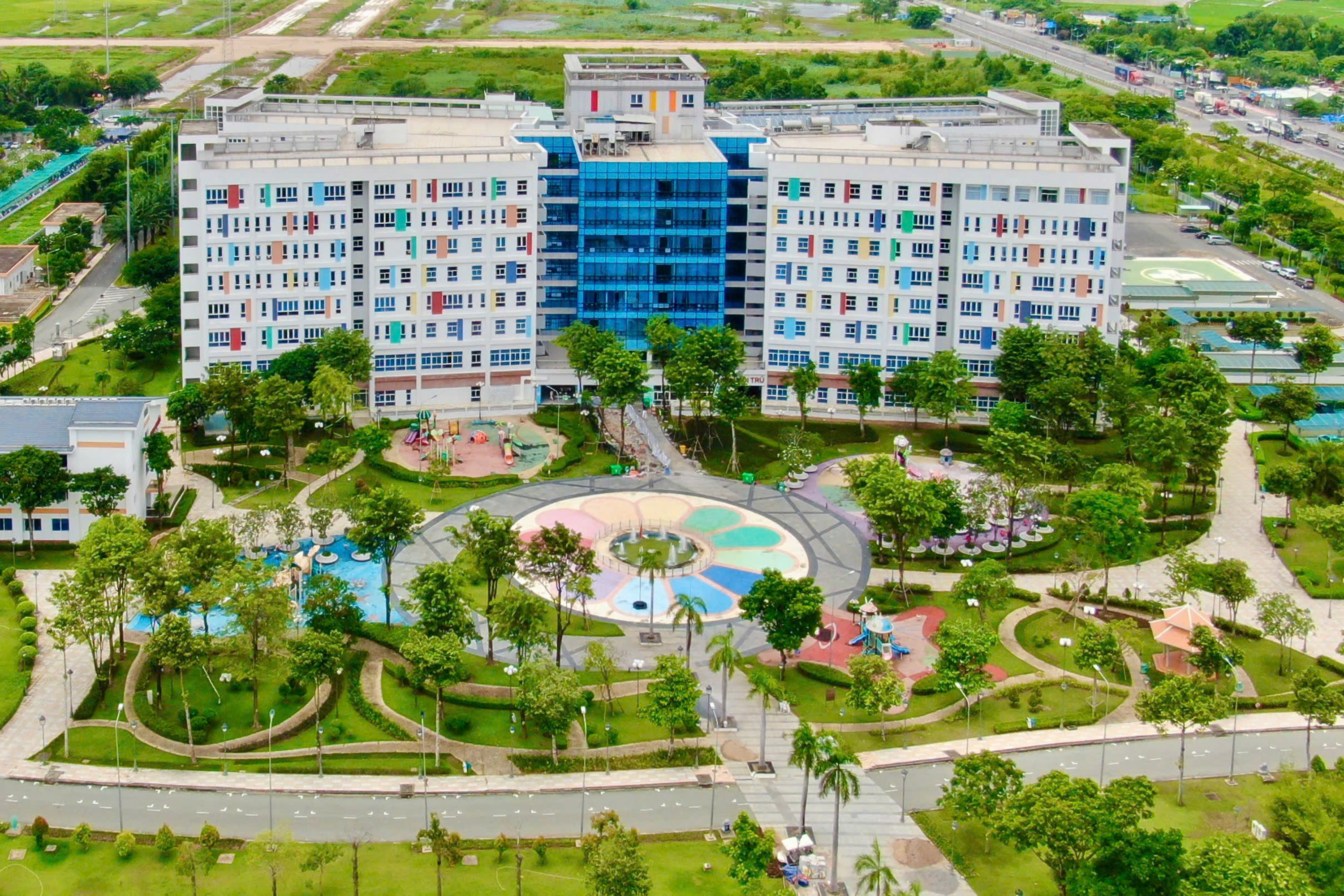Toàn cảnh Bệnh viện Nhi đồng Thành phố nằm trong Cụm Y tế Tân Kiên. Ảnh: HOÀNG HÙNG