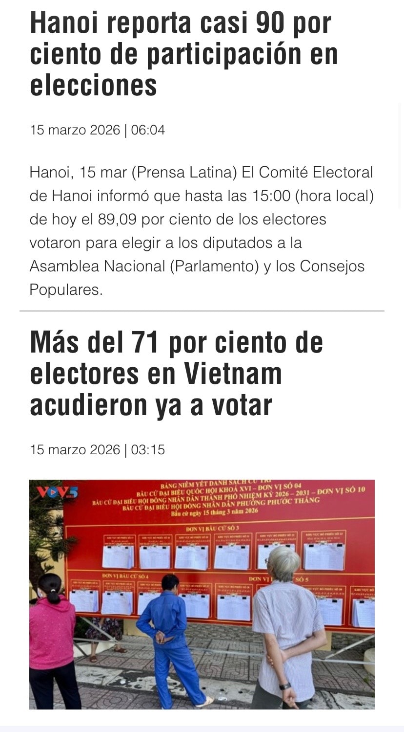 Tờ Prensa Latina liên tục cập nhật tin tức bầu cử của Việt Nam