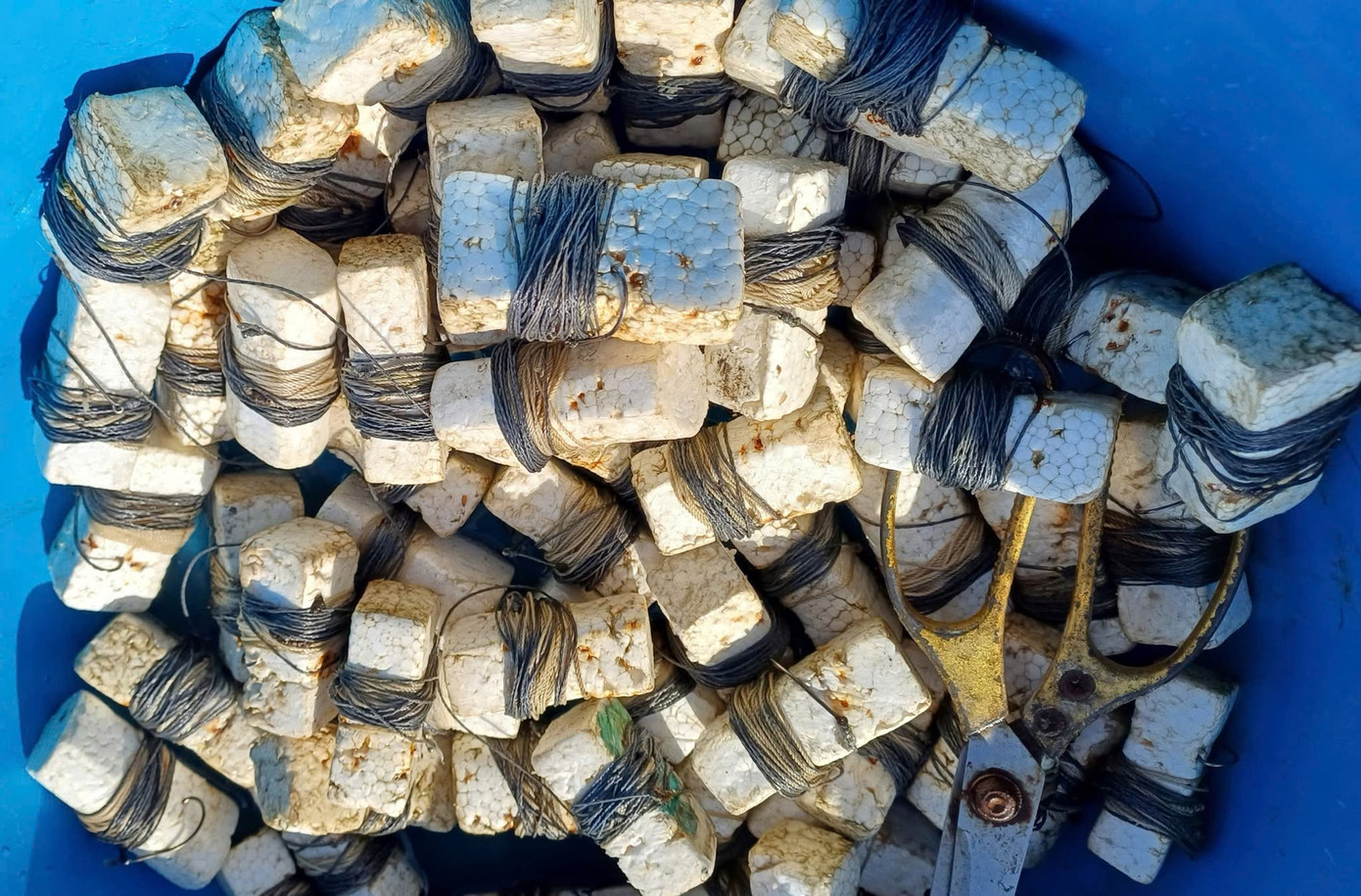 Dây câu lịch có chiều dài khoảng 3m với một đầu được buộc bằng miếng xốp để người dân dễ tìm khi đi thăm.