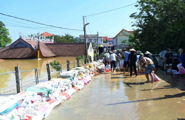 Người dân xã Hợp Thịnh (Bắc Ninh) gia cố, chống ngập lụt.