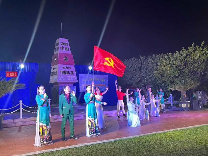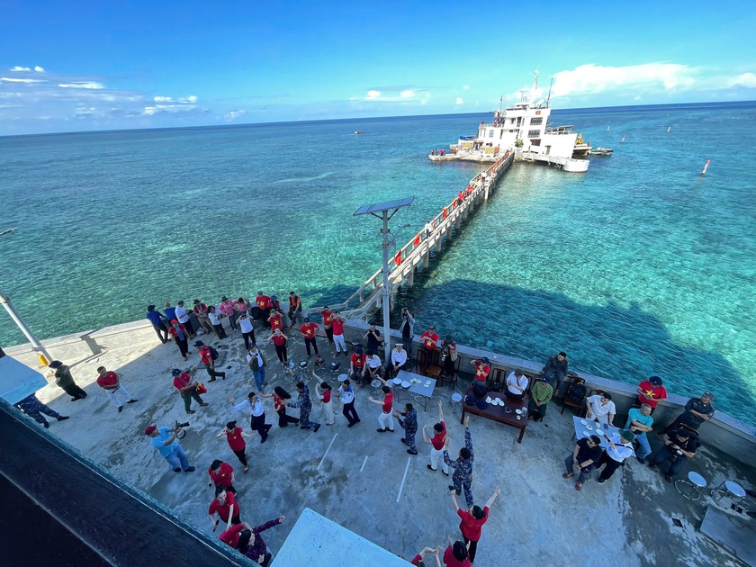 Những phút giây sinh hoạt văn hóa, văn nghệ của Đoàn công tác trên đảo Đá Thị. Ảnh: Bắc Việt