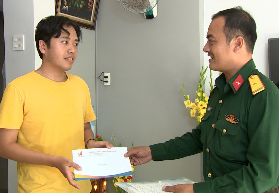 Ban CHQS phường Quy Nhơn thăm, động viên và tặng quà cho Vũ trước khi lên đường nhập ngũ. Ảnh: H.P