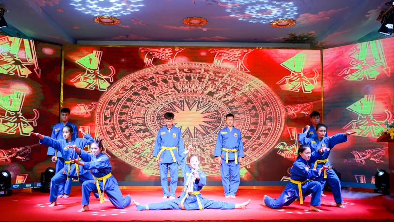 Các vận động viên Vovinam biểu diễn tại chương trình tọa đàm.