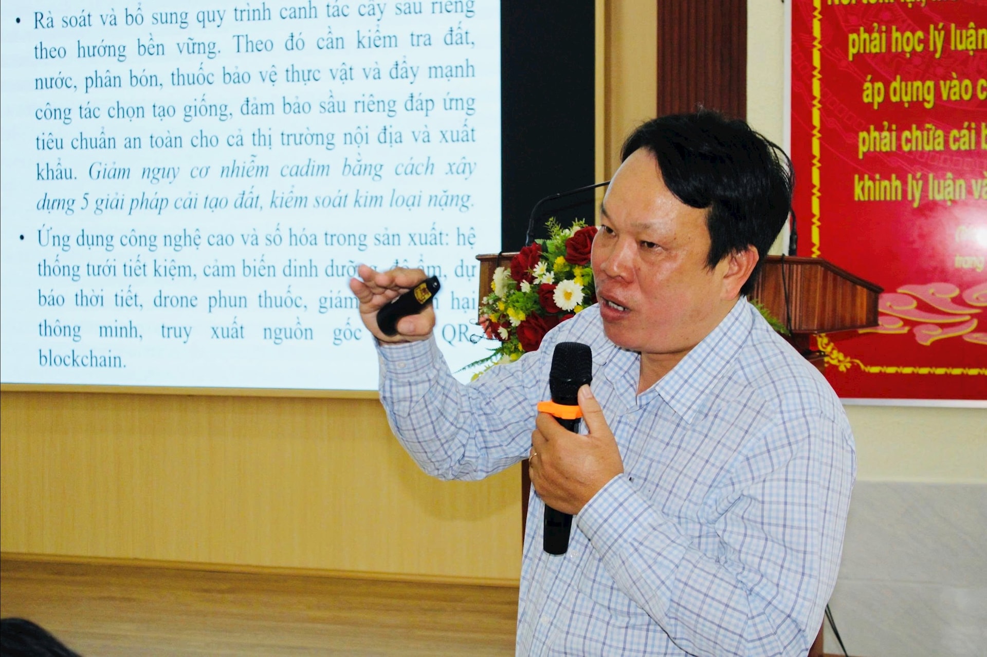 Tại cuộc tọa đàm, các đại biểu đã trao đổi, cập nhật các tiến bộ khoa học – kỹ thuật trong canh tác và chăm sóc sầu riêng.