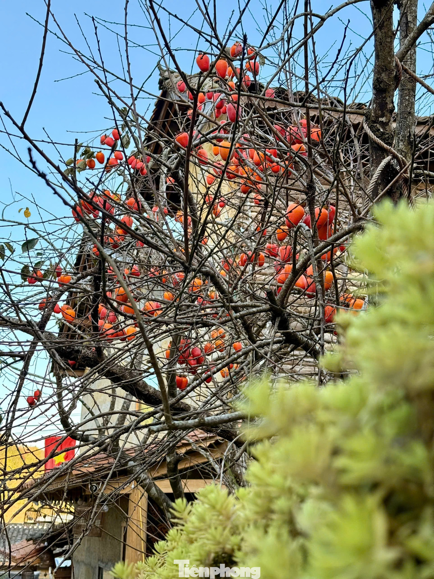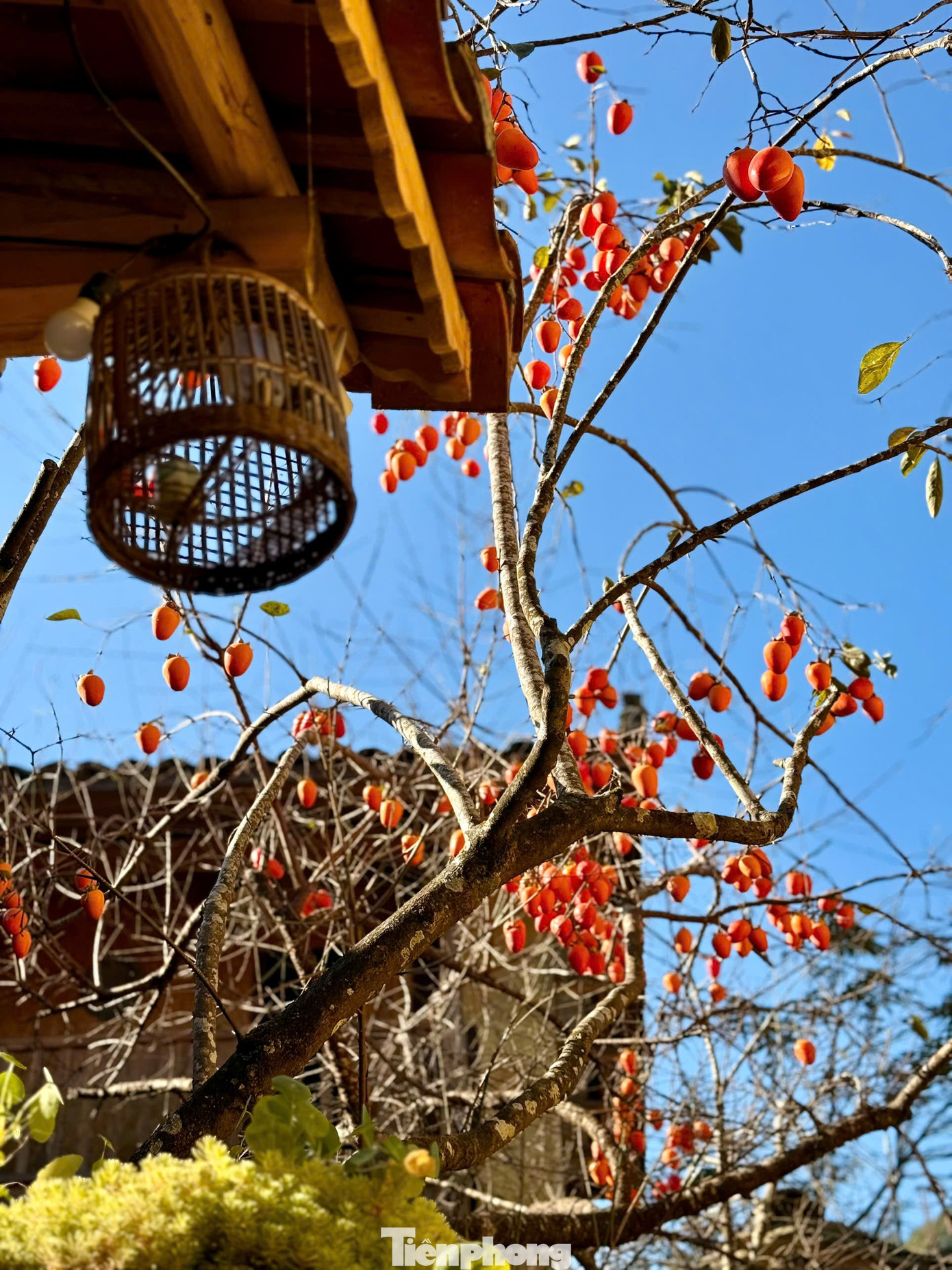 Một chi tiết thu hút trong dịp này là cây hồng nằm ngay cạnh quán, trở thành điểm check-in nổi bật của nhiều đoàn khách. Khi vào mùa, quả hồng đỏ nổi bật trên nền trời trong và bản làng phía dưới, tạo nên khung hình đặc trưng của Lũng Cú. Không ít nhóm du khách xếp hàng để chụp ảnh cùng cây hồng, lấy toàn cảnh Lô Lô Chải làm phông nền.