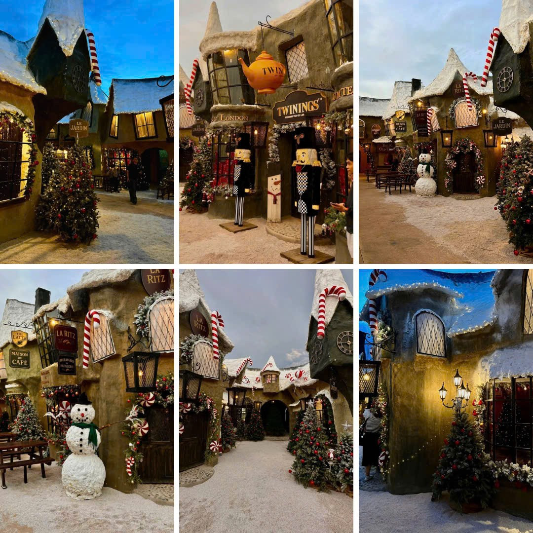 Chỉ cách trung tâm TP.HCM khoảng 40km, khu tổ hợp như tái hiện lại một ngôi làng châu Âu huyền ảo pha chút cổ kính. Khi ghé đến nơi đây, netizen sẽ phải choáng ngợp trước một không gian được đầu tư cực kỳ hoành tráng và công phu. Những ngôi nhà với kiến trúc độc đáo, mái ngói phủ đầy tuyết trắng, những ô cửa sổ lấp lánh ánh đèn vàng ấm áp tạo nên một khung cảnh đẹp như trong truyện cổ tích.
