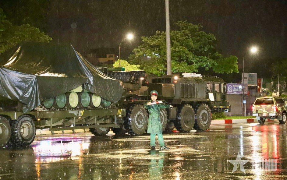 Khối xe pháo quân sự tham gia thực hiện nhiệm vụ A80 về nơi tập kết.