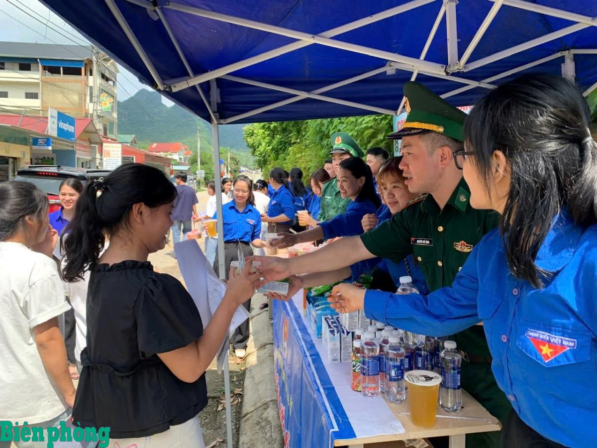 Đoàn viên, thanh niên BĐBP tỉnh Cao Bằng tiếp sức mùa thi cho các thí sinh tham gia kỳ thi trung học phổ thông quốc gia trên địa bàn. Ảnh: Huy Dương