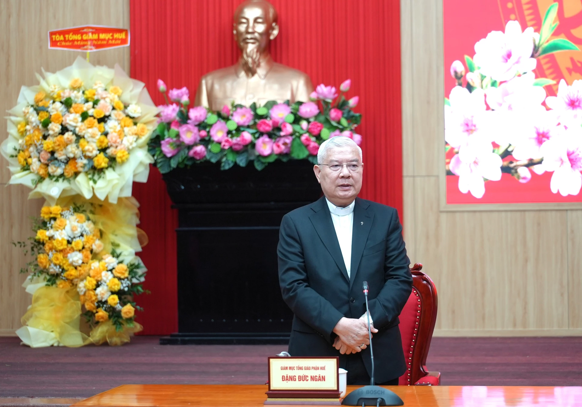 Tổng Giám mục Giuse Đặng Đức Ngân gửi lời chúc mừng Tết Nguyên Đán Bính Ngọ 2026 đến các đồng chí lãnh đạo tỉnh - Ảnh: T.Đ