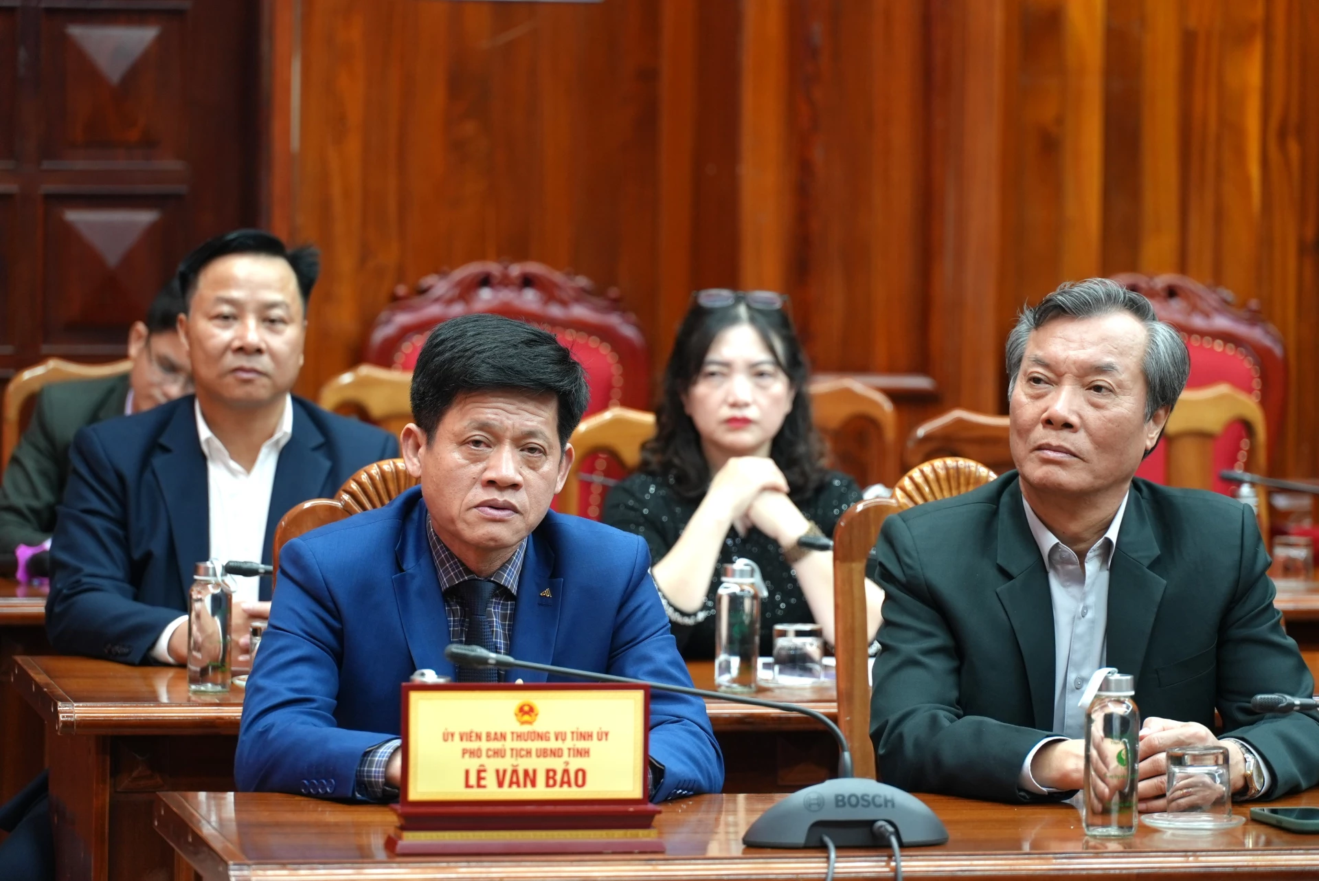 Thay mặt lãnh đạo tỉnh, đồng chí Lê Hồng Vinh, Chủ tịch UBND tỉnh đã thông tin thêm cho Tổng Giám mục Giuse Đặng Đức Ngân và đoàn về một số kết quả nổi bật trong phát triển kinh tế-xã hội, thu hút đầu tư của tỉnh năm 2025 và những định hướng, chiến lược của tỉnh trong năm 2026 để đạt mục tiêu tăng trưởng hai con số.
