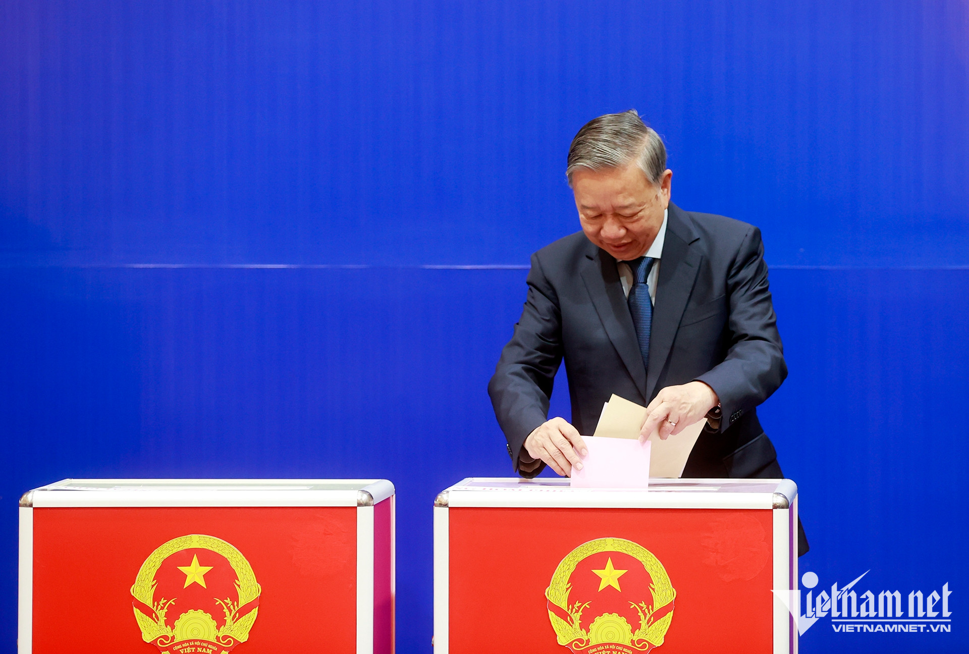 Tổng Bí thư Tô Lâm bỏ phiếu tại khu vực bỏ phiếu số 2 phường Ba Đình (TP Hà Nội). Ảnh: Phạm Hải