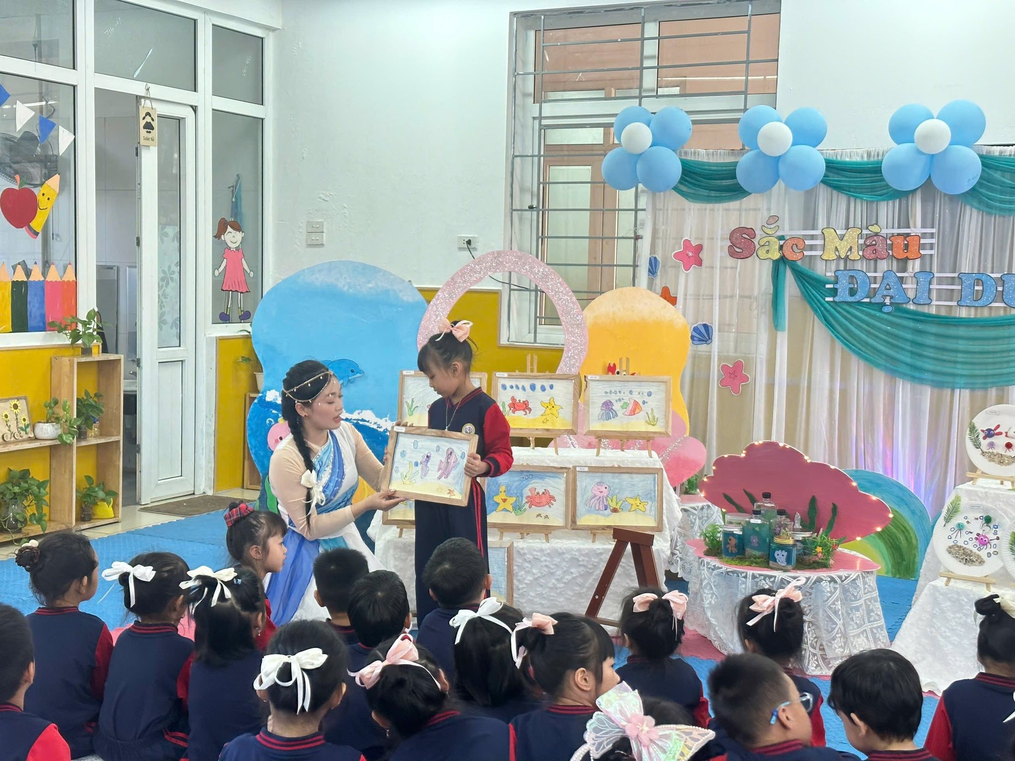 Cô và trò trường mầm non Sen Hồng, Dương Nội, Hà Nội trong một tiết học.
