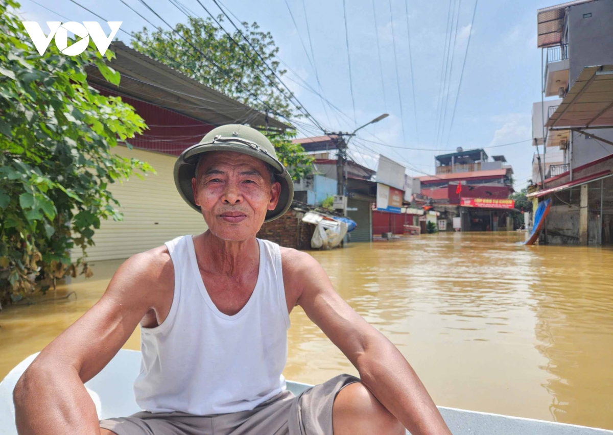Đưa phóng viên Báo Điện tử Tiếng nói Việt Nam đi khắp các con đường, ngõ hẻm của tổ dân phố Đông Tiến, tỉnh Bắc Ninh bằng con thuyền nhỏ, ông Trần Văn Khuê chia sẻ, sống hàng chục năm bên cạnh dòng sông Cầu hiền hòa này mà chưa năm nào thấy mực nước sông dâng lên mức đỉnh điểm như vậy. Nước lên rất nhanh, tràn vào các ngôi nhà khiến mọi sinh hoạt của người dân bị đảo lộn nhanh chóng.