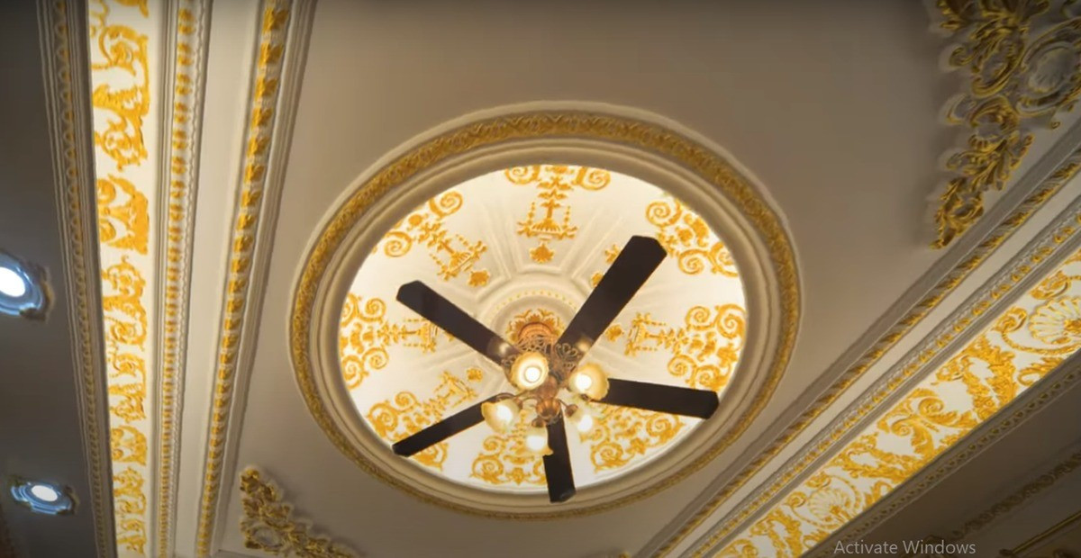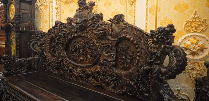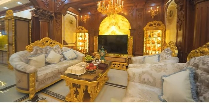 Không chỉ gây ấn tượng với vẻ ngoài lộng lẫy, nội thất bên trong nhà cũng khiến nhiều người trầm trồ với các chi tiết dát vàng lấp lánh. Ảnh chụp màn hình NhaTo