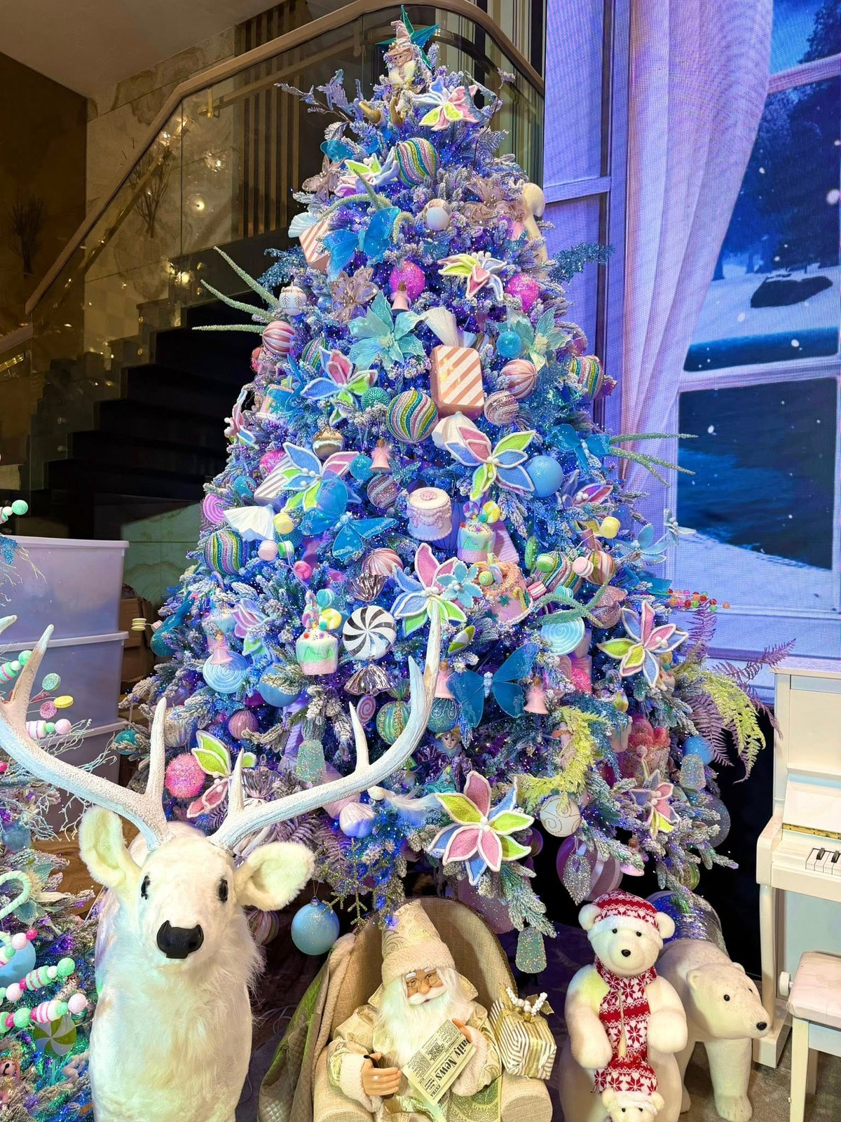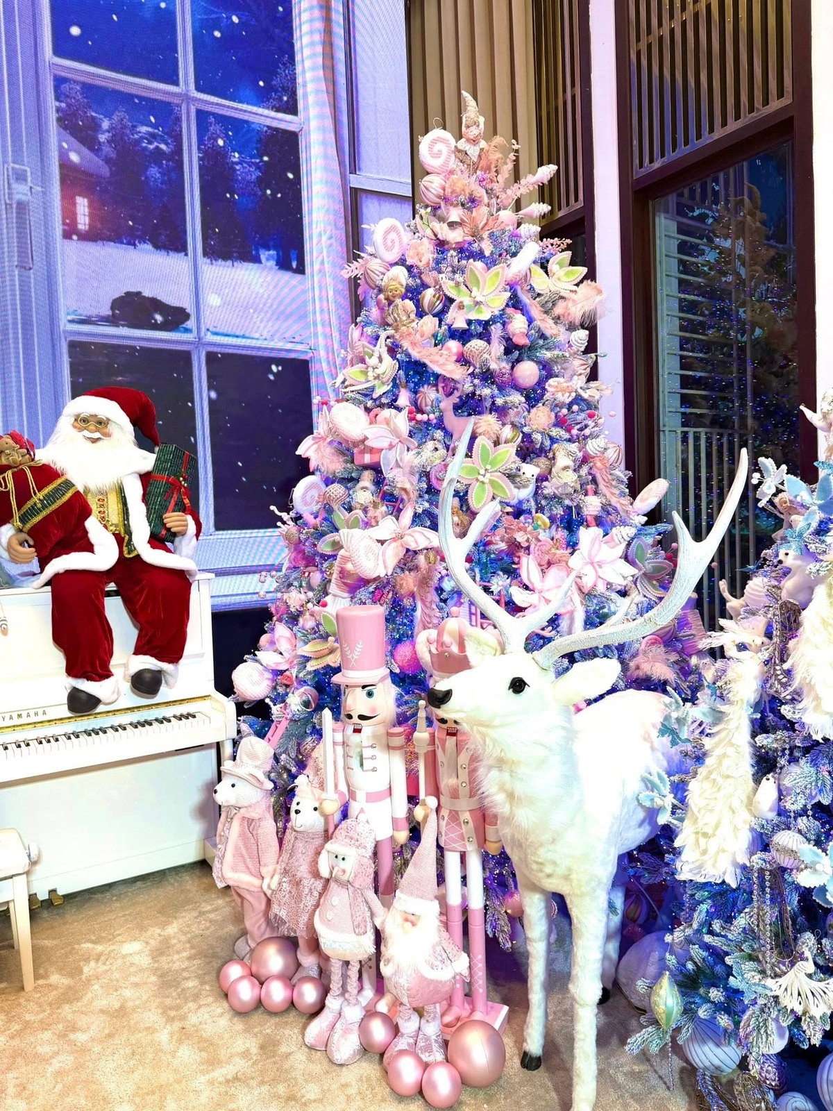Cây thông Noel rực rỡ sắc màu đặt trong phòng khách tạo cảm giác vừa lộng lẫy, vừa ấm áp. Ảnh: FBNV