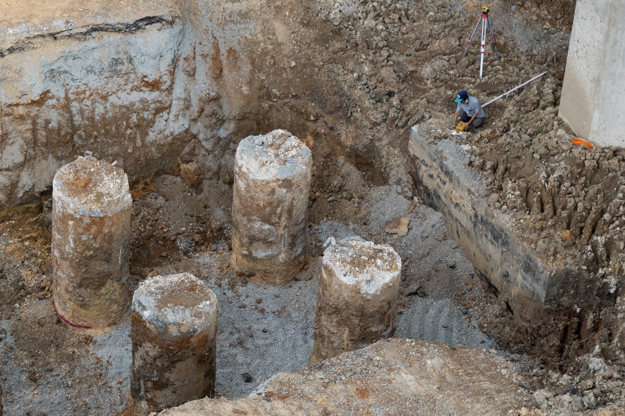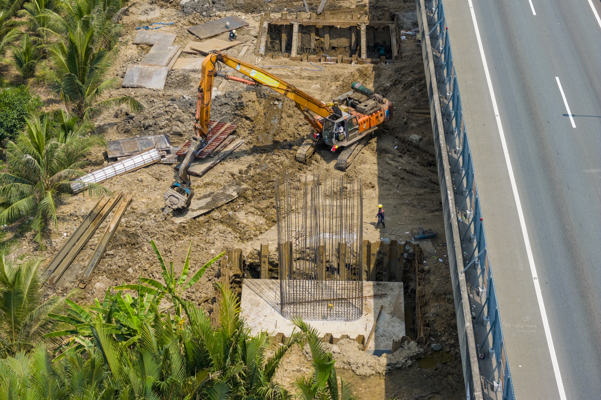 Đoạn từ cầu Long Thành hướng về Vành đai 3 TP.HCM cũng đang được liên danh nhà thầu huy động hàng trăm máy móc thi công cọc khoan nhồi và trụ cầu.