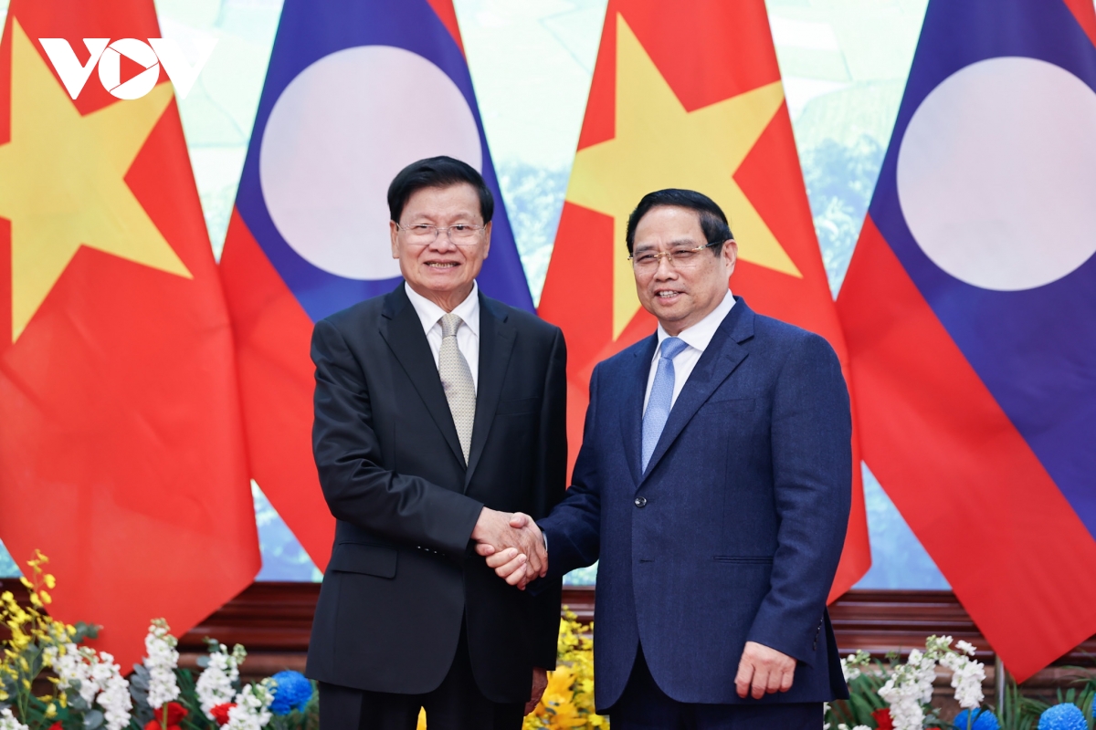 Chiều 26/1, tại Trụ sở Chính phủ, Thủ tướng Phạm Minh Chính đã hội kiến Tổng Bí thư, Chủ tịch nước Lào Thongloun Sisoulith. Thủ tướng nhấn mạnh việc tăng cường gắn kết hai nền kinh tế, nhất là gắn kết hạ tầng chiến lược giao thông, năng lượng và logistics. Thủ tướng cũng đề nghị tạo điều kiện thuận lợi cho các doanh nghiệp Việt Nam đầu tư xây dựng nhà máy chế biến, sản xuất tăng giá trị gia tăng, đáp ứng nhu cầu tại nội địa Lào. Tổng Bí thư, Chủ tịch nước Lào Thongloun Sisoulith nhất trí thúc đẩy gắn kết hai nền kinh tế, thúc các dự án chiến lược; đánh giá cao việc hai bên mở rộng hình thức thanh toán bằng đồng nội tệ của mỗi nước.