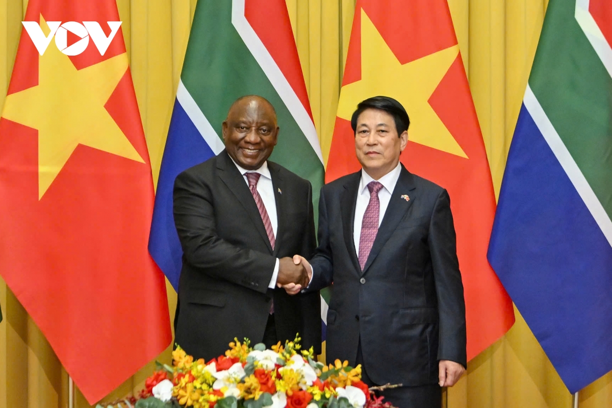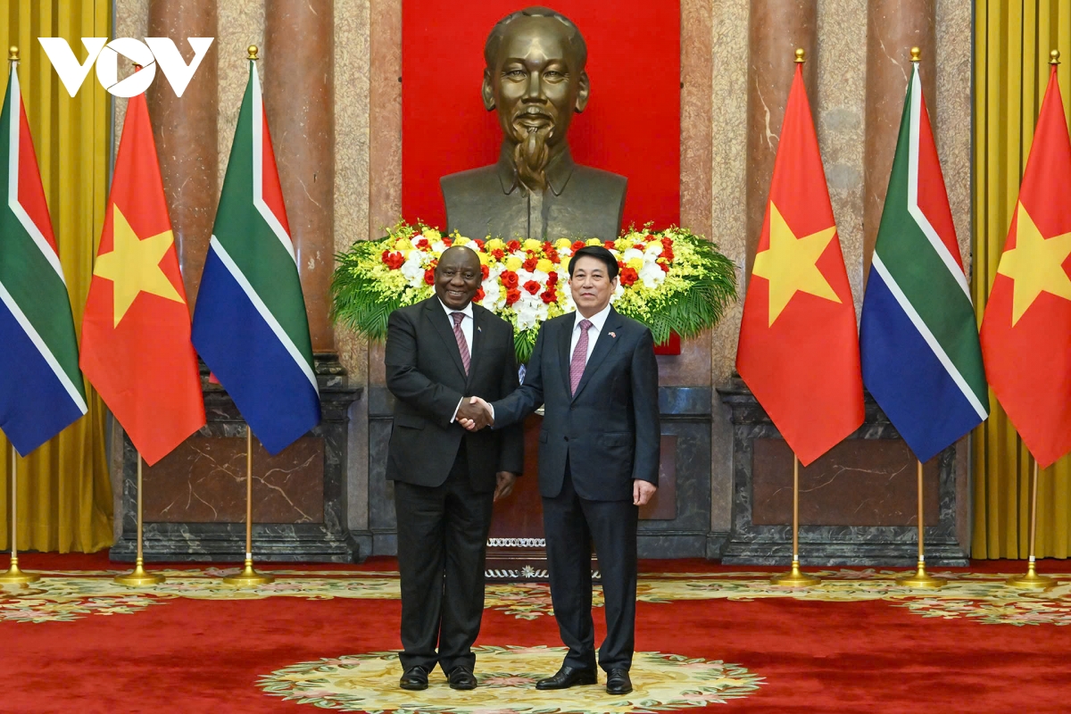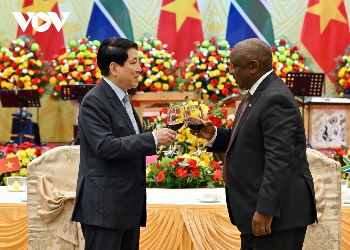 Tối 23/10, Chủ tịch nước Lương Cường đã chủ trì chiêu đãi trọng thể Tổng thống Cyril Ramaphosa cùng đoàn cấp cao Nam Phi. Chủ tịch nước bày tỏ tin tưởng chuyến thăm Việt Nam lần này của Tổng thống Nam Phi sẽ mở ra một giai đoạn mới, tươi sáng và rực rỡ hơn nữa trong quan hệ tốt đẹp giữa hai nước. Về phần mình, Tổng thống Nam Phi khẳng định hai nước có nhiều thế mạnh có thể bổ sung cho nhau, mở ra tiềm năng to lớn trong hợp tác trên nhiều lĩnh vực cũng như chia sẻ trách nhiệm thúc đẩy đối thoại và hợp tác toàn cầu.