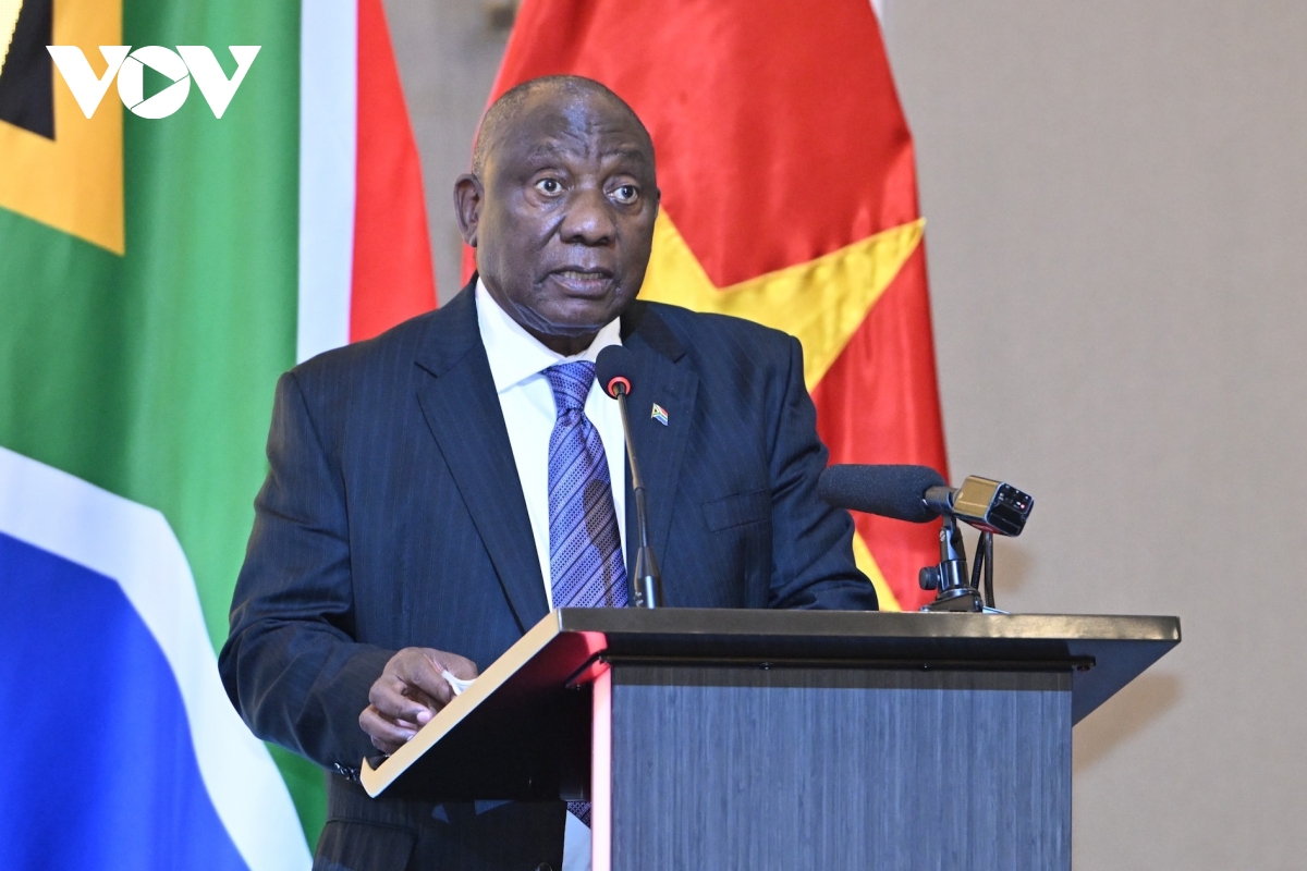 Chiều 24/10, Tổng thống Nam Phi Cyril Ramaphosa và Thủ tướng Phạm Minh Chính đã dự Diễn đàn Doanh nghiệp Việt Nam - Nam Phi. Tổng thống Cyril Ramaphosa khẳng định Nam Phi cam kết giảm thiểu các rào cản về thương mại, bảo trợ về đầu tư, tăng cường pháp lý để hai bên hợp tác. Tổng thống Cyril Ramaphosa kêu gọi doanh nghiệp Việt Nam nắm bắt cơ hội, thiết lập quan hệ hợp tác cụ thể với các doanh nghiệp Nam Phi qua những hợp đồng, dự án thiết thực.