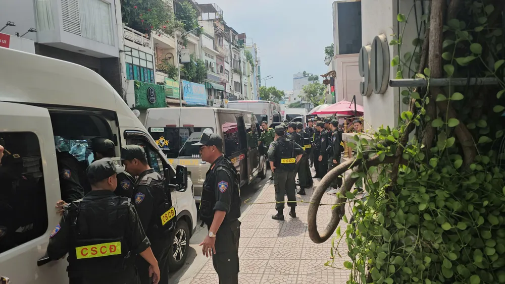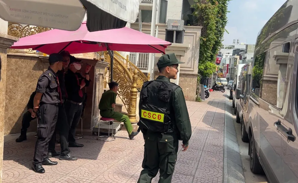 Khoảng gần 100 cảnh sát thuộc Bộ Công an và Công an TP.HCM có mặt để đảm bảo an ninh trật tự. Dù trời mưa, lực lượng vẫn phong tỏa nhà riêng của thẩm mỹ viện Mailisa, thu giữ nhiều tài liệu, vật chứng và túc trực xuyên suốt.