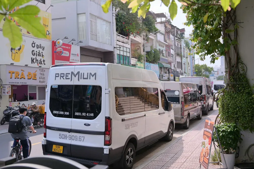Ba xe khách biển vàng được bố trí chặn lối ra vào, không cho khách và người dân tiếp cận bên trong. Hoạt động kinh doanh tại các cơ sở tạm dừng, khách hàng được yêu cầu rời đi.