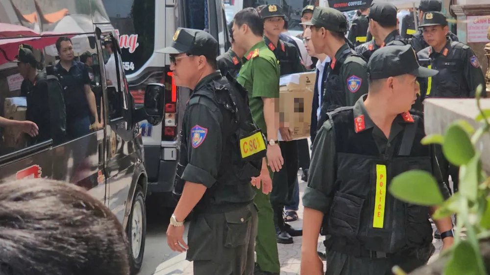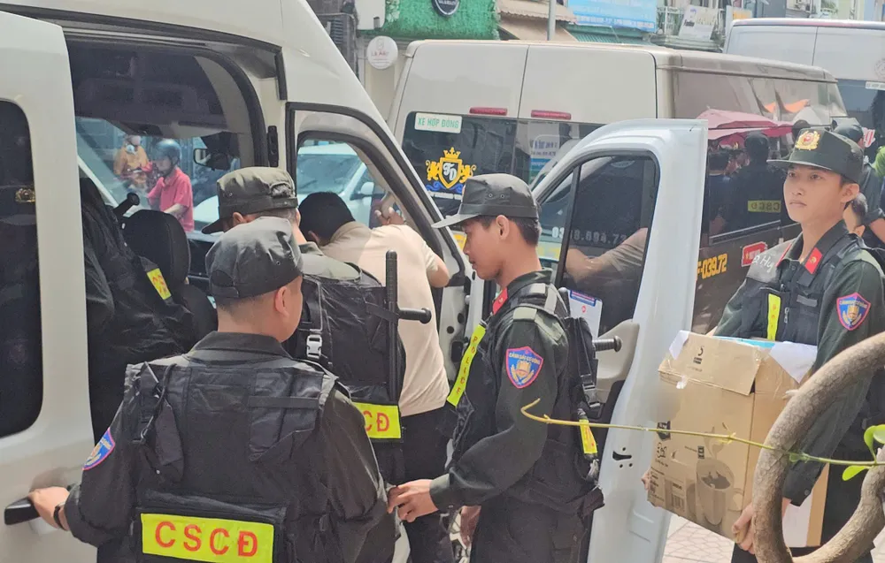 Việc khám xét được triển khai từ 8 giờ sáng, với sự tham gia của hàng chục cán bộ, chiến sĩ, phối hợp cảnh sát cơ động phong tỏa, đảm bảo an ninh trật tự.