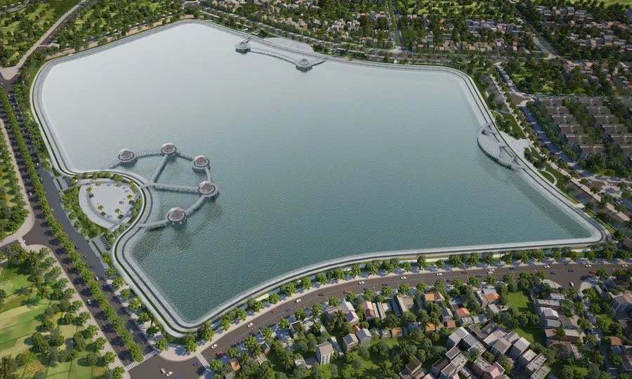 Phối cảnh tổng thể dự án hồ điều hòa Cự Khối sau khi hoàn thành.