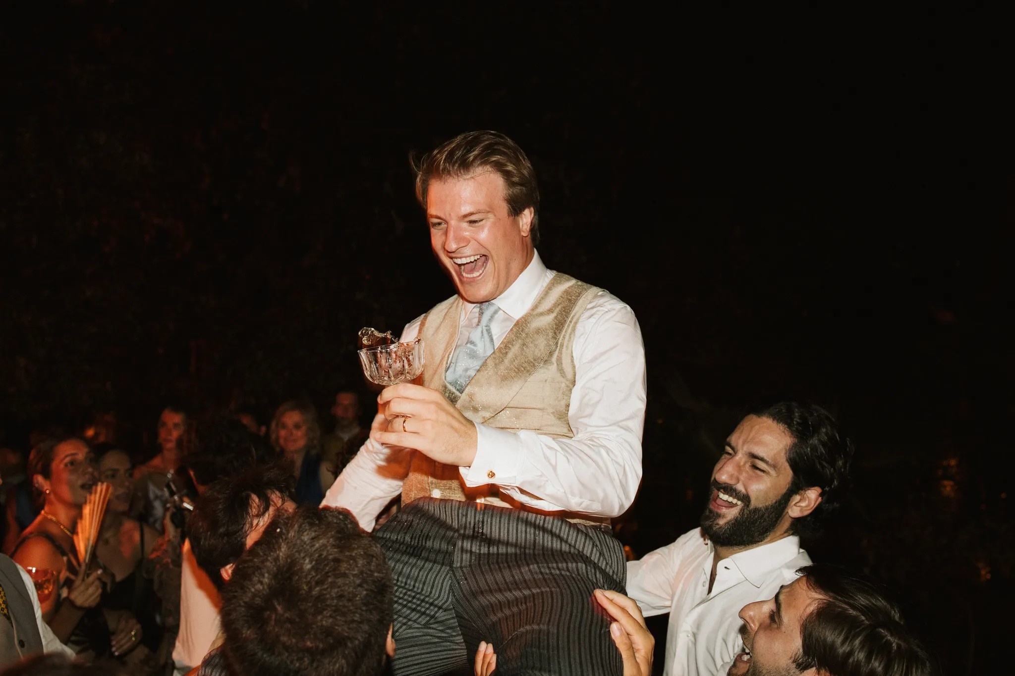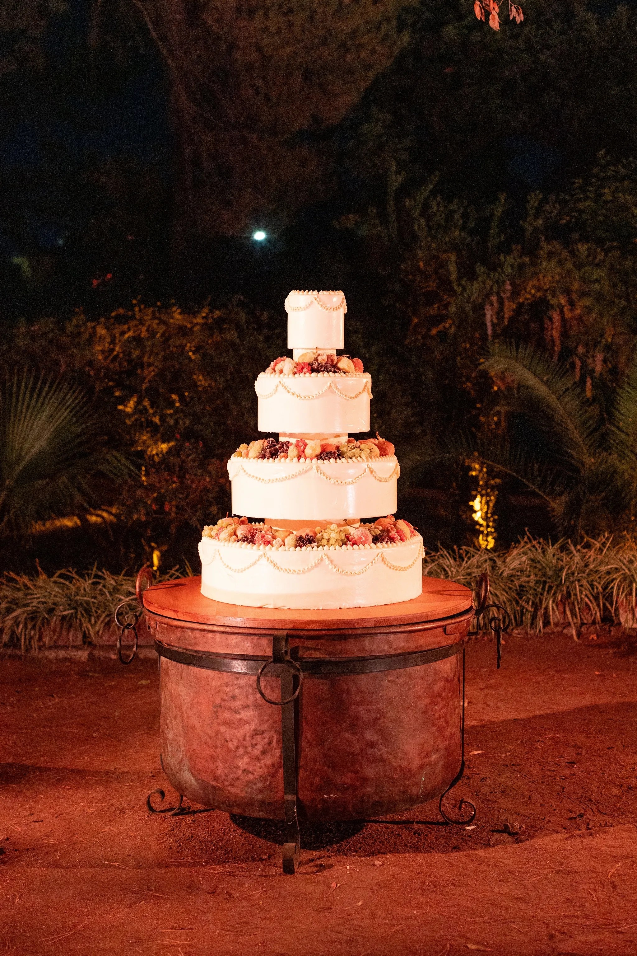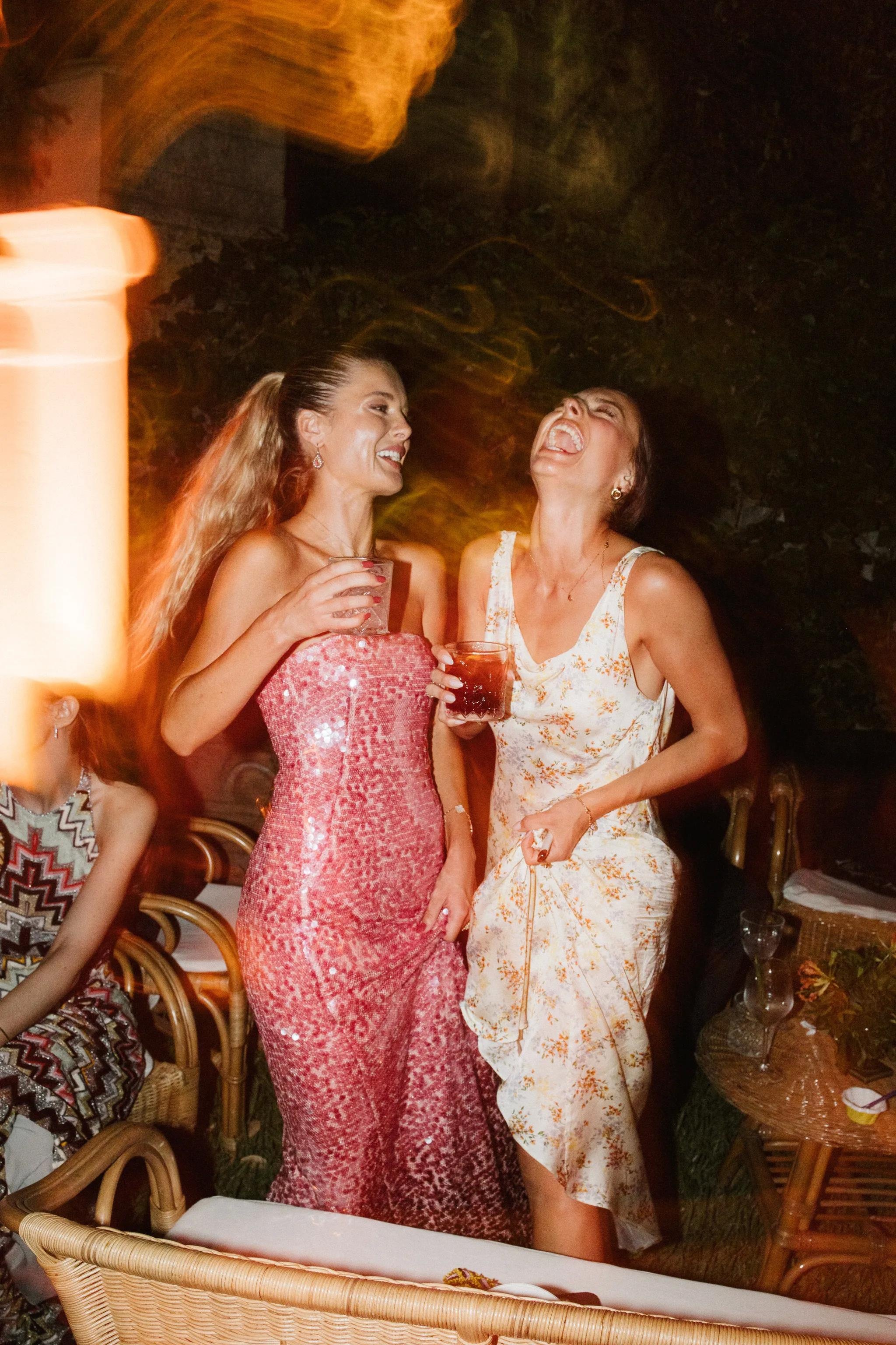 Đêm tiệc tiếp tục trên bãi cỏ dưới bầu trời đầy sao, với sàn nhảy, hai DJ và các quầy tráng miệng được bày như những “kim tự tháp” gồm kem, bánh cannoli kiểu Sicilia và quầy bar, nơi mỗi ly đồ uống đều được trang trí bằng hoa.