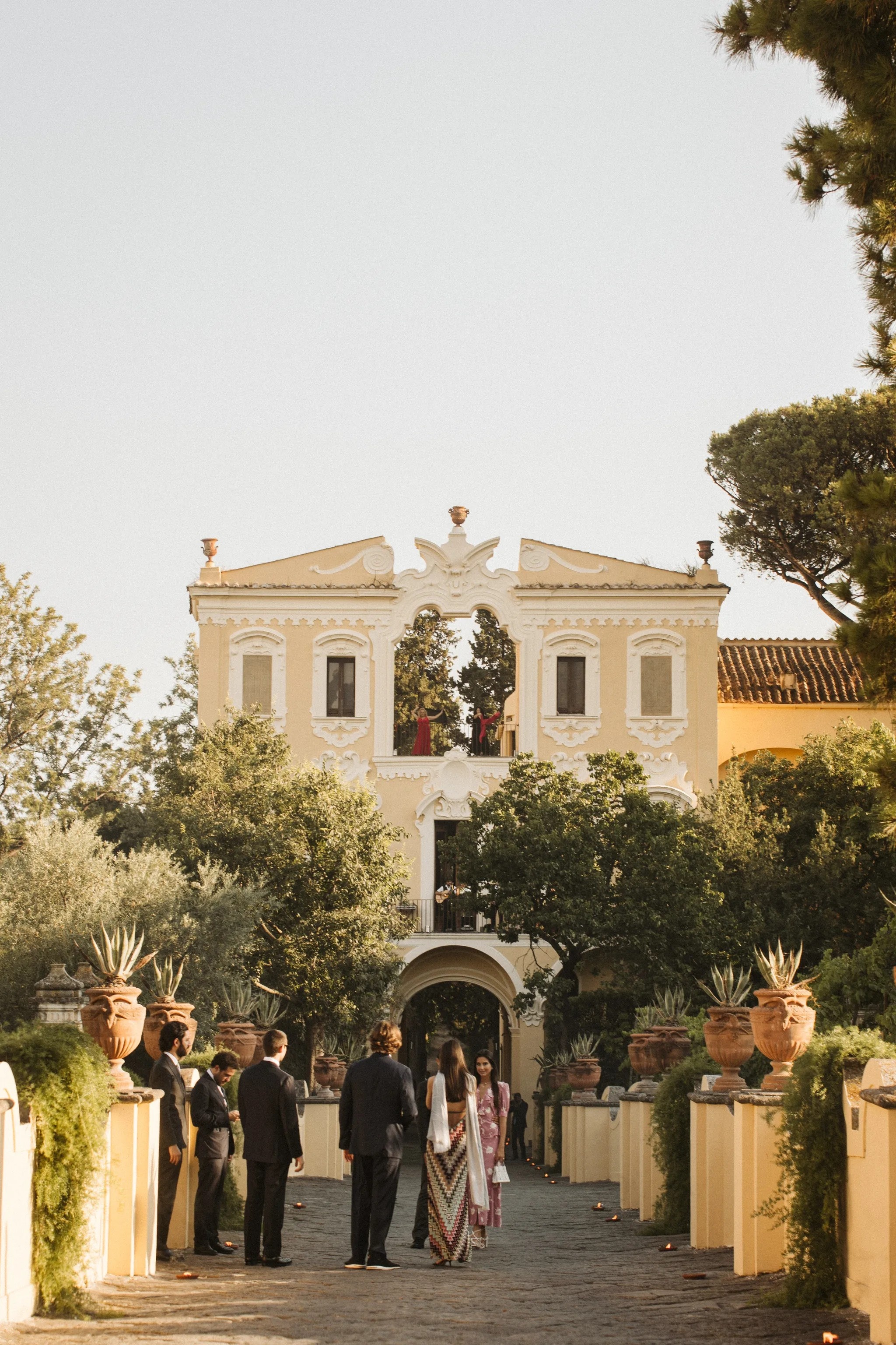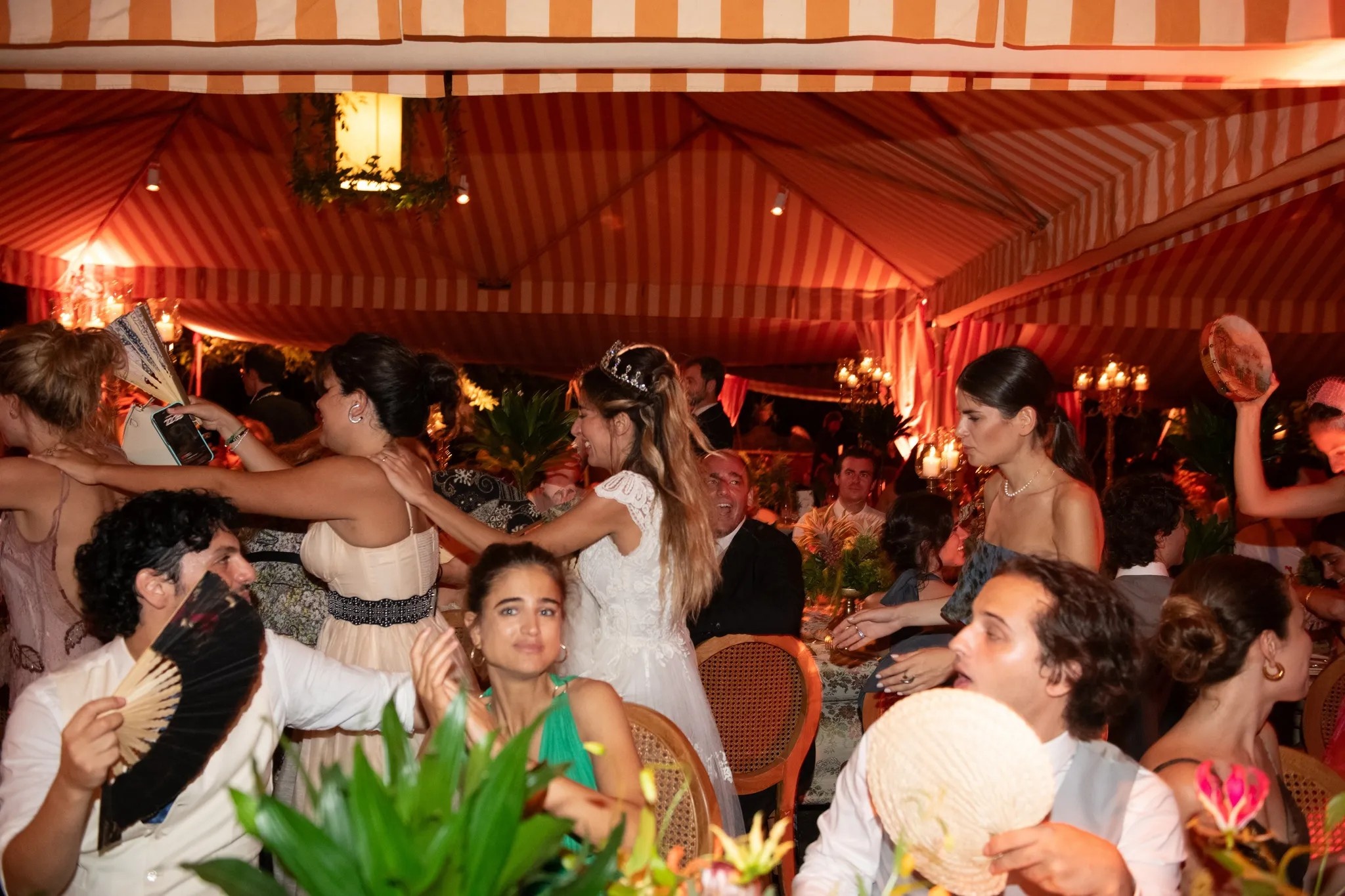 Sau nghi thức tại nhà thờ, khách mời di chuyển lên đoàn xe khoảng 50 chiếc về biệt thự Vesuvian từ thế kỷ 18 của gia đình ở thành phố Naples (Italy) dự tiệc mừng. Tại đây, các vũ công nhảy điệu tarantella truyền thống của miền nam Italy để mở màn buổi tối.