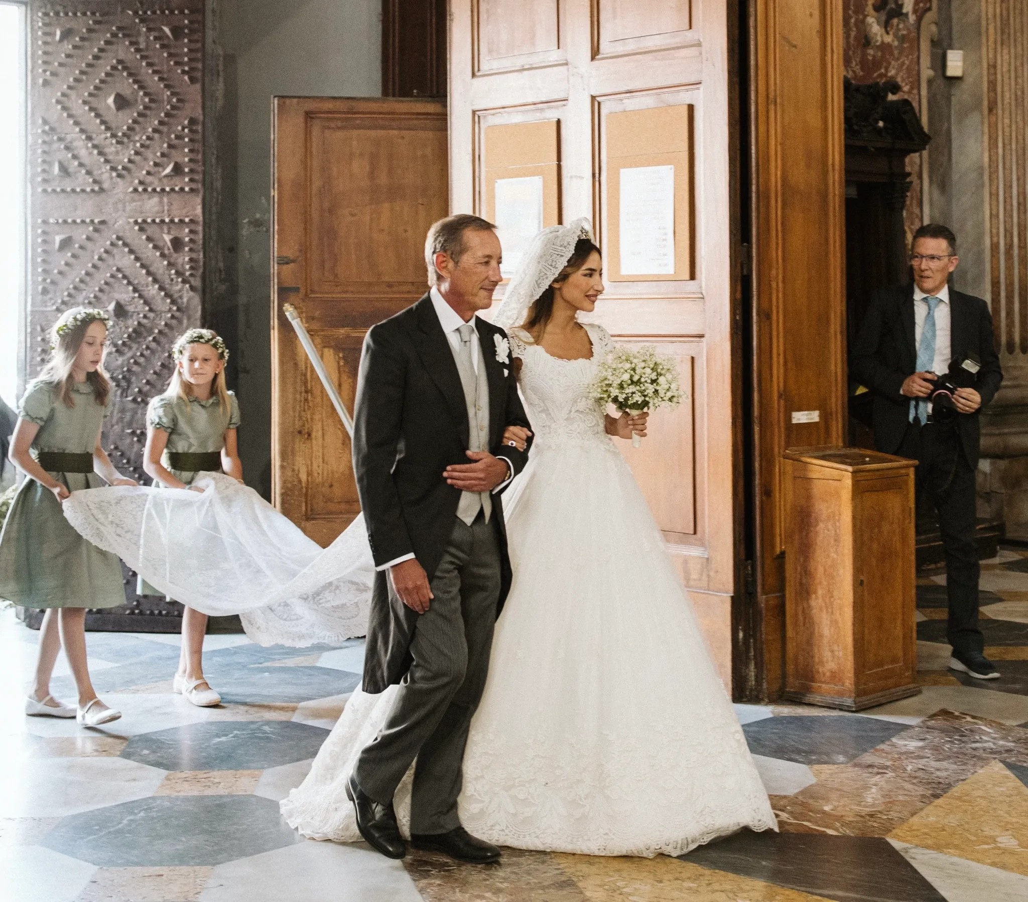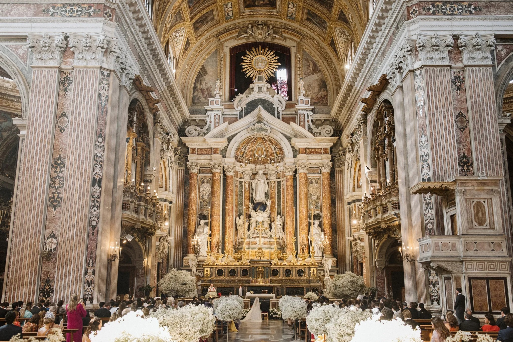 Ngày tiếp theo, cả hai chính thức làm lễ thành hôn tại Nhà thờ Gesù Nuovo, từng là cung điện của Hoàng tử Roberto Sanseverino, một trong những tổ tiên của cô dâu. Cô dâu tiến vào sau đoàn gồm 8 phù rể, sau đó, mỗi bên chọn 3 người làm chứng cho hôn lễ. Đặc biệt, danh sách này có sự góp mặt của Hoàng tử Carlo, Công tước xứ Castro. Thánh lễ do Đức ông Giuseppe Sciacca chủ trì và được nhận phước lành từ Giáo hoàng Leo XIV.
