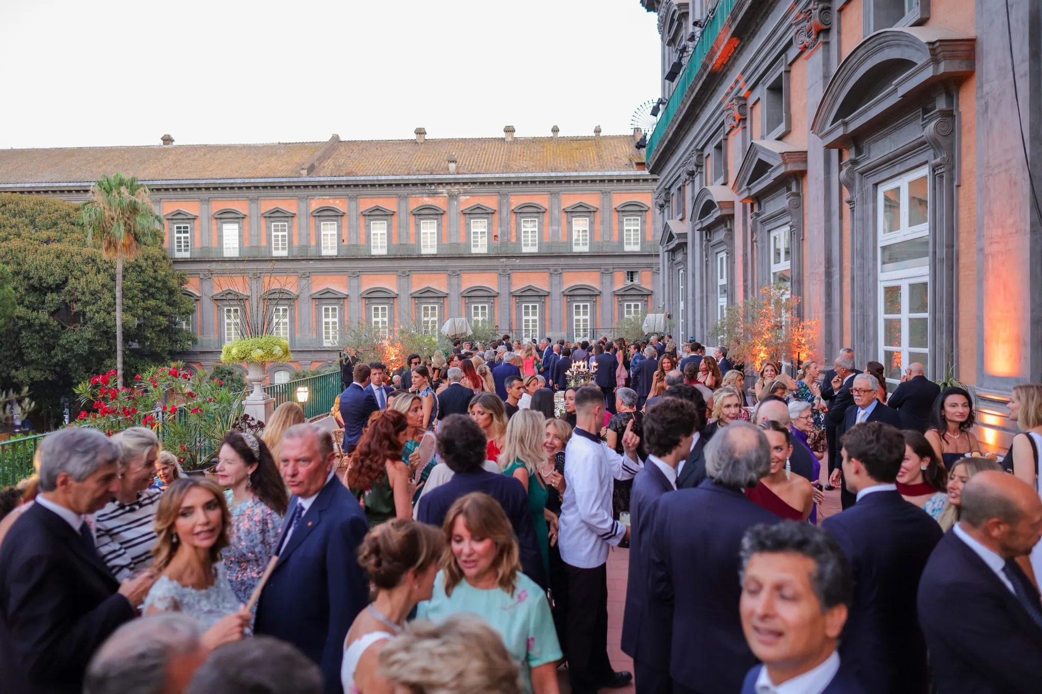 Lễ kỷ niệm mở màn vào tối 4/7 bằng tiệc cocktail tại câu lạc bộ Circolo Nazionale dell'Unione tại Naples (Italy), do ông bà cô dâu chủ trì. Sự kiện quy tụ hơn 600 khách, gồm bạn bè quốc tế và nhiều thế hệ gia đình, tạo nên không khí trang trọng nhưng gần gũi. Về khuya, nhóm khách trẻ được đưa tới tiệm pizza nổi tiếng Concettina ai Tre Santi gần đó, thưởng thức các món ăn địa phương đặc biệt trong bầu không khí sôi động.