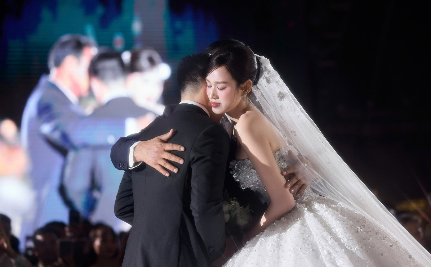 Trước hàng nghìn khách mời, Đỗ Hà gửi lời nhắn tới chồng: “Mọi con đường em đi, em sẽ nhớ về khoảnh khắc này. Em luôn giữ trong tim mình sự dịu dàng để khi anh mệt sẽ có nơi quay về. Khi hạnh phúc đến, chúng ta sẽ nhìn nhau mỉm cười, còn khó khăn thì cùng nhau vượt qua. Từ hôm nay và mãi về sau, em và anh không còn là hai lối đi riêng mà là một hành trình chung - hành trình mang tên hạnh phúc trọn đời".