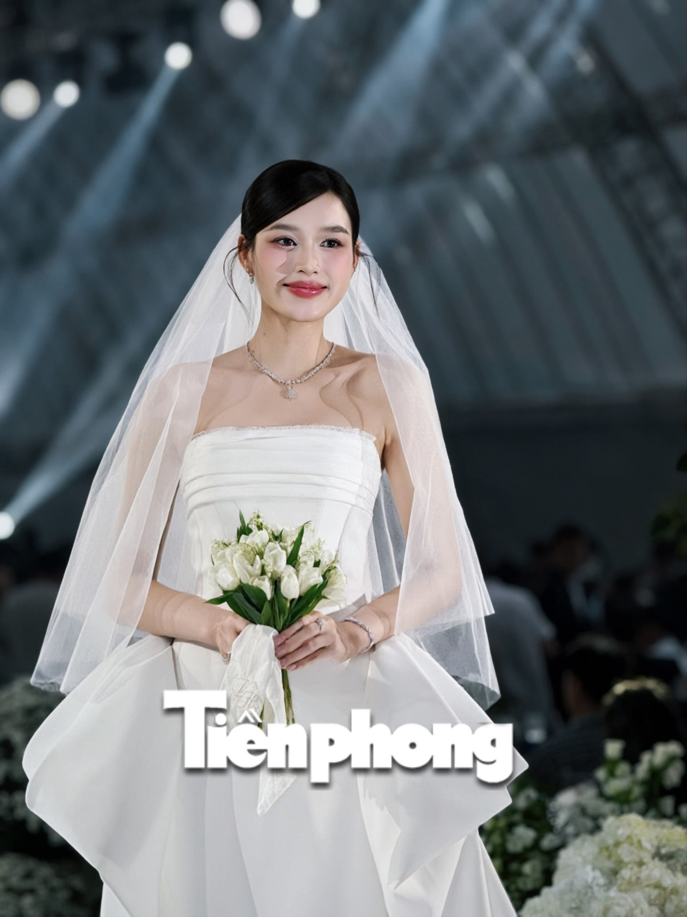 Bộ đầm cưới thứ hai Đỗ Thị Hà diện khi làm lễ. Ảnh: Phạm Trường.