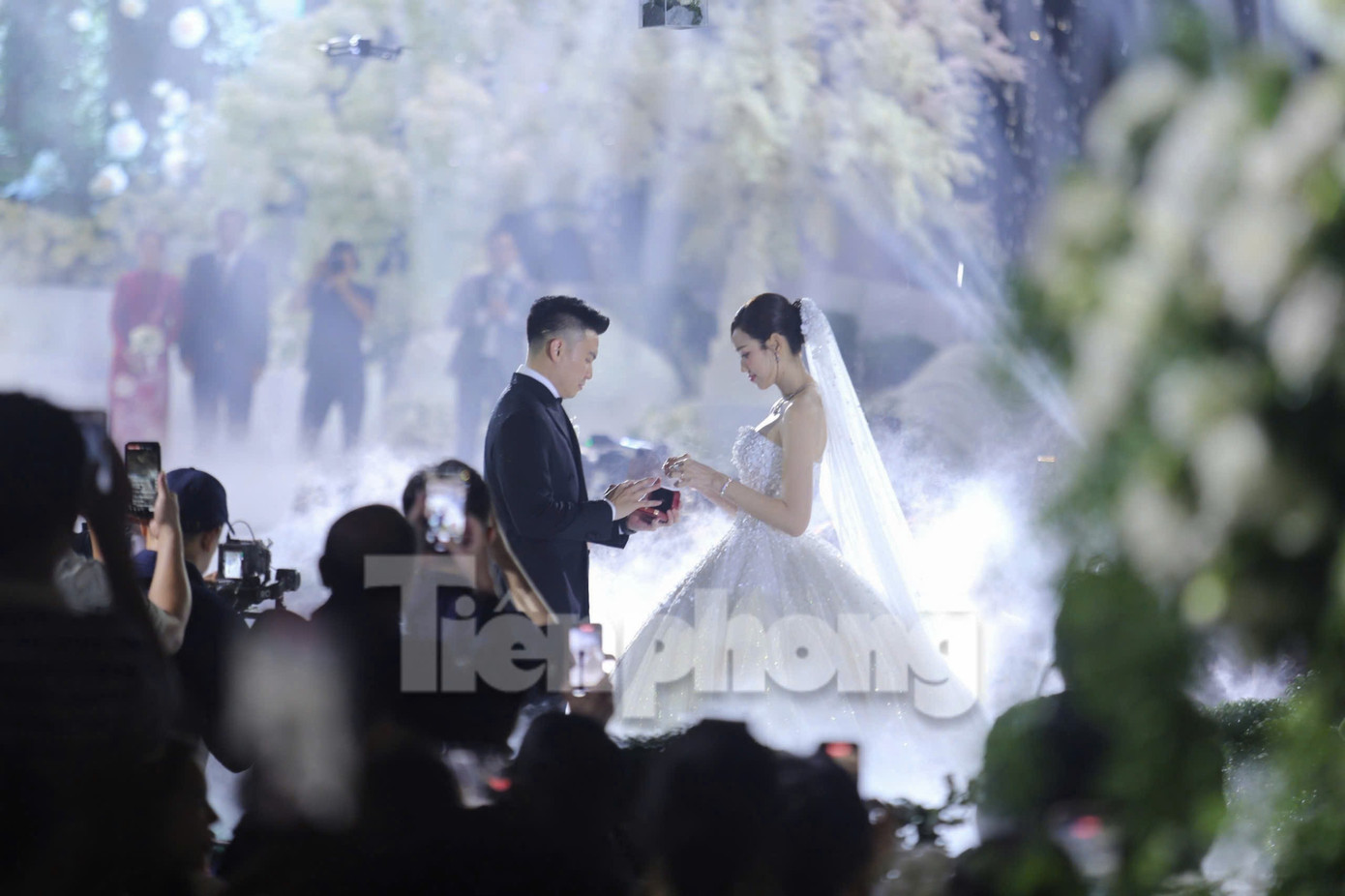 Khoảnh khắc chú rể Viết Vương trao nhẫn cho cô dâu. Ảnh: Phạm Trường.