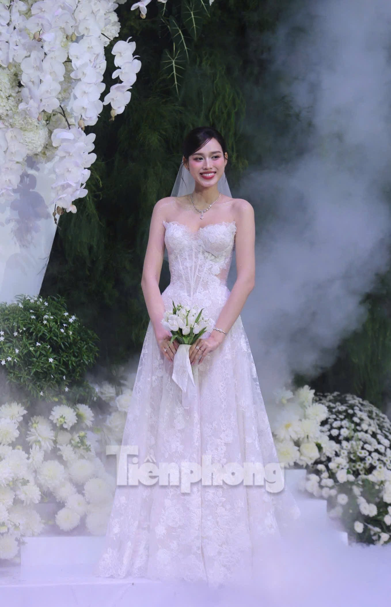 Hoa hậu Việt Nam 2020 thay váy đi bàn để thuận tiện hơn trong việc di chuyển. Đây là bộ đầm thứ ba của cô dâu. Ảnh: Phạm Trường.