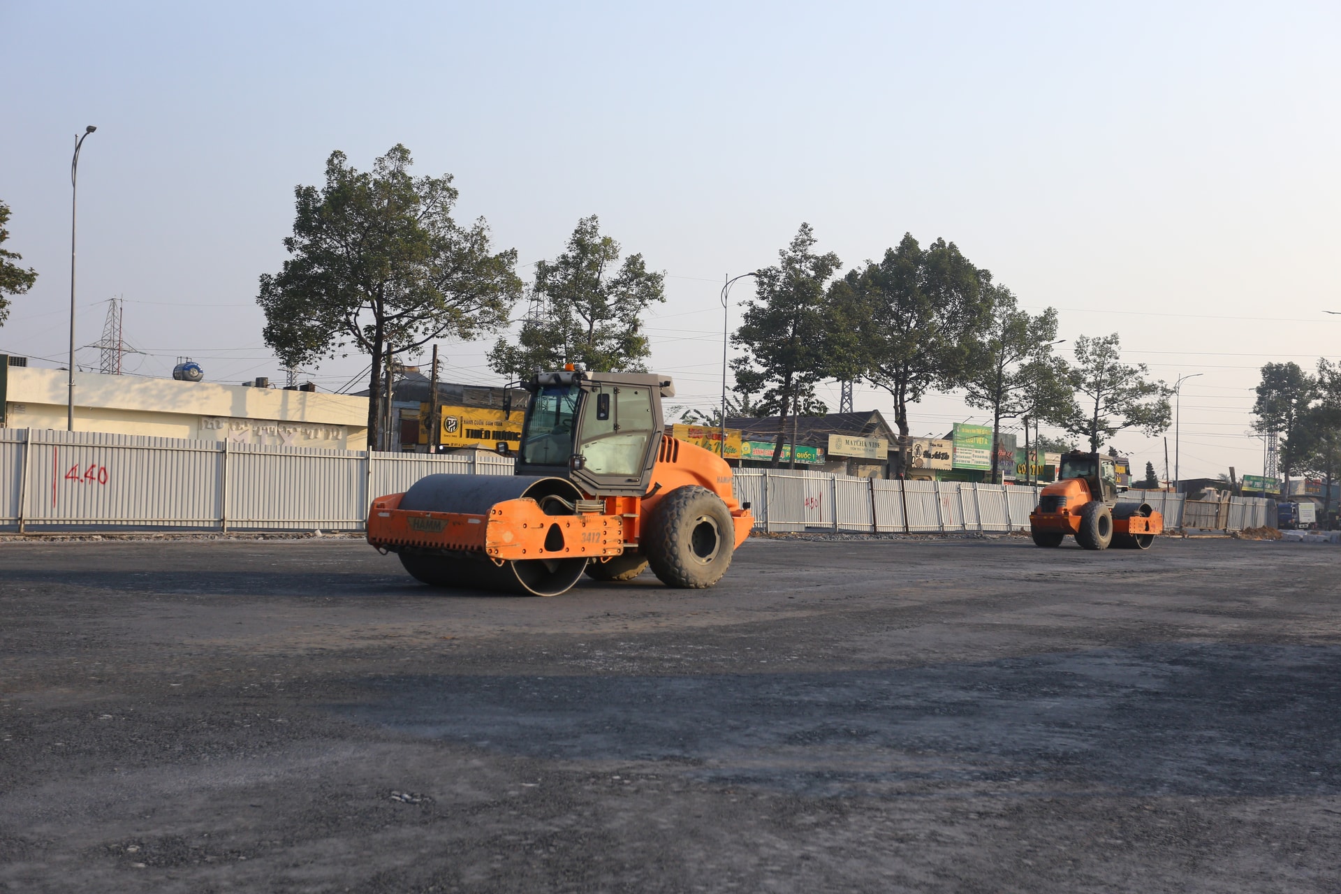 Tại công trường, hàng chục công nhân cùng nhiều trang thiết bị đang tất bật thi công.