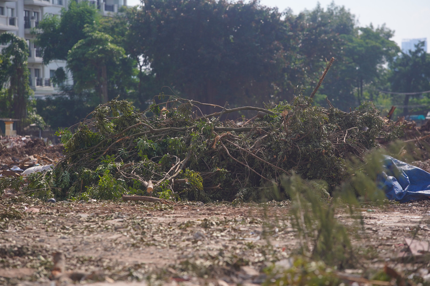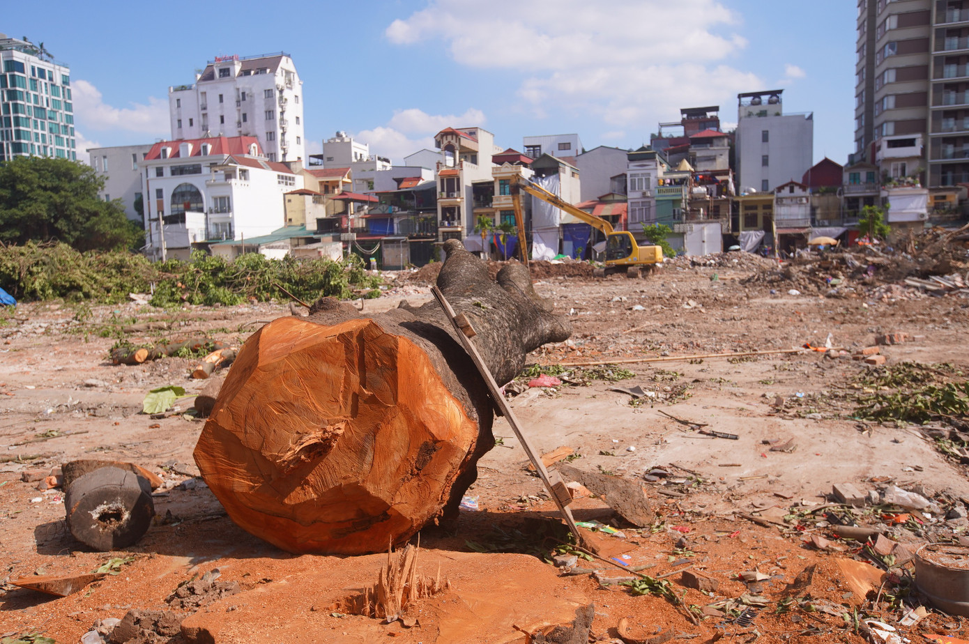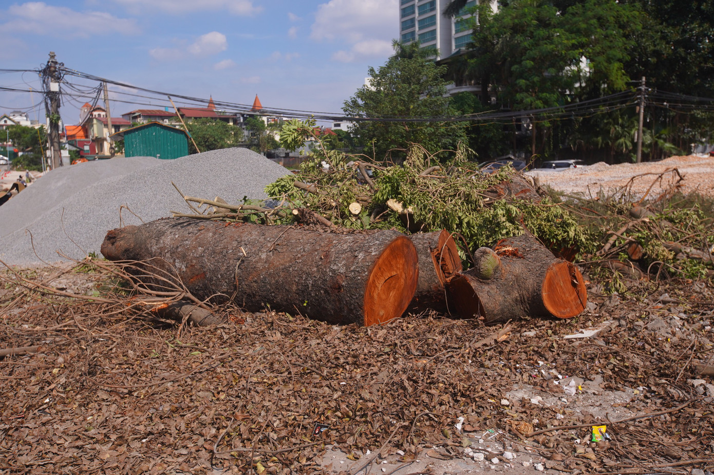 Nhiều cây lớn, thân to được chặt hạ, di dời.