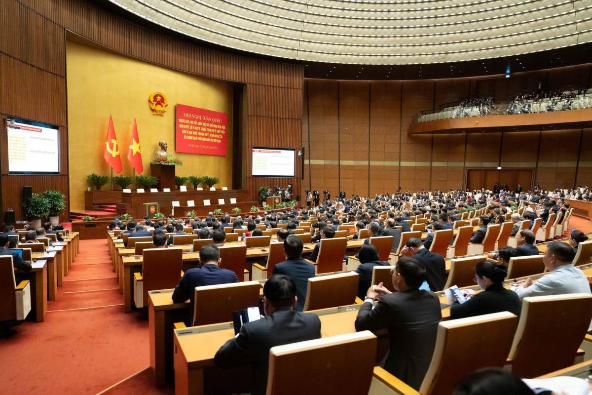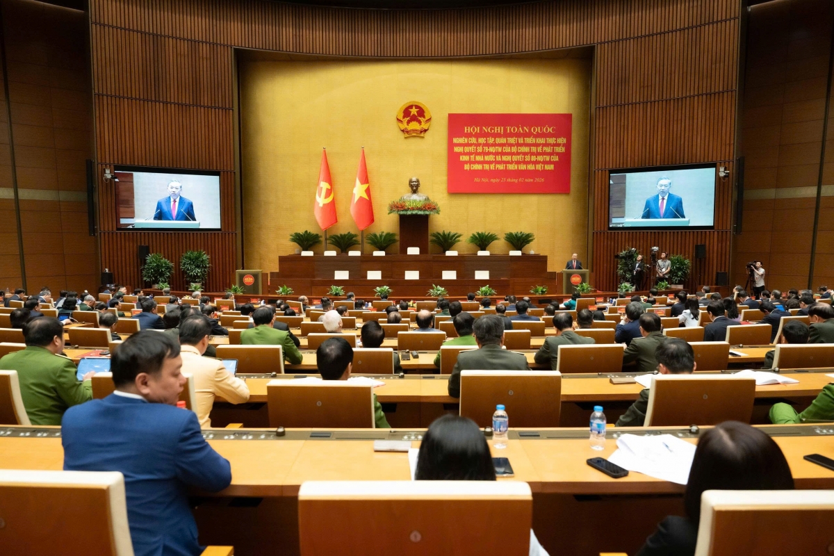 Tổng Bí thư Tô Lâm phát biểu chỉ đạo tại hội nghị, nhấn mạnh hai Nghị quyết mới là sự bổ sung thêm những quyết sách lớn của Đảng, được hình thành trên cơ sở tổng kết sâu sắc thực tiễn và phát triển tư duy lý luận trong bối cảnh đất nước bước vào giai đoạn phát triển mới, nhằm đồng thời giải quyết hai yêu cầu có tính nền tảng là tăng cường “nội lực vật chất” và củng cố “nội lực tinh thần”