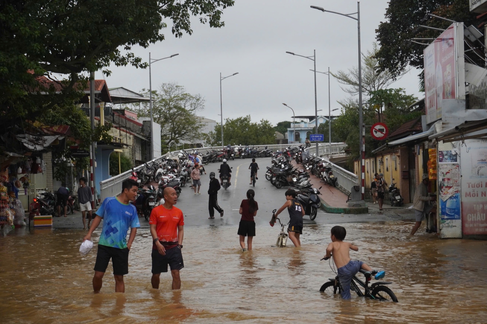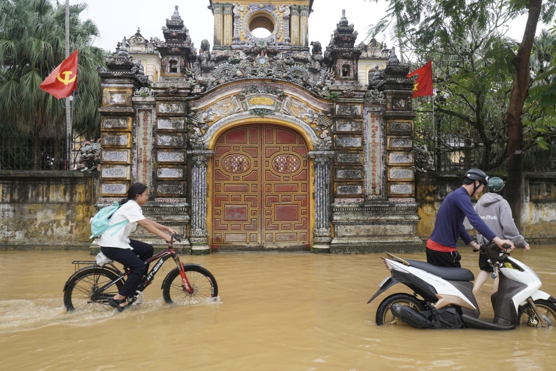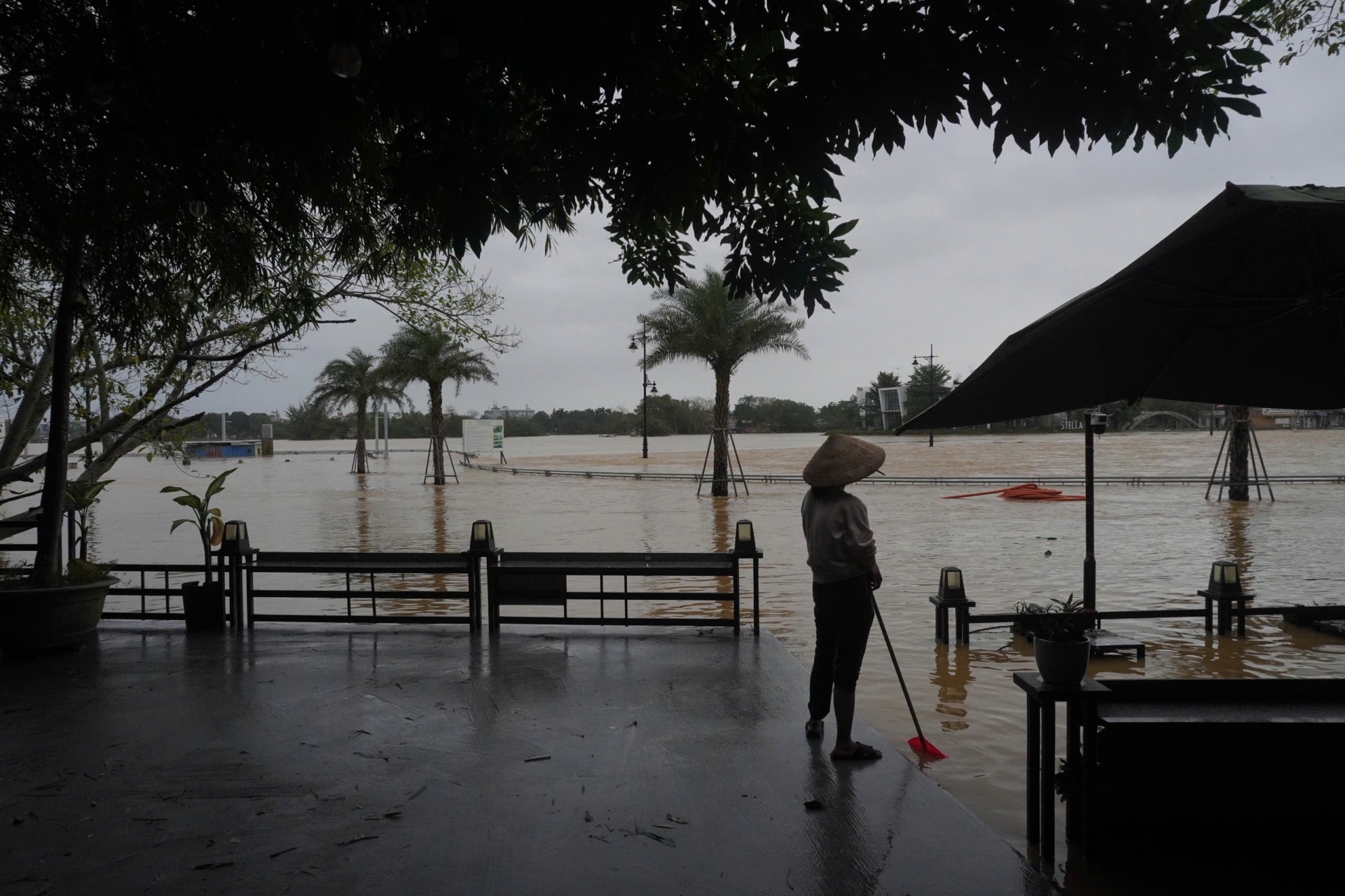 Ngày 17/11, tiếng còi hú cảnh báo lũ lụt một lần nữa vang lên tại TP Huế. Đây là lần thứ 4 trong vòng một tháng địa phương chứng kiến trận ngập trên diện rộng. Mực nước sông Hương tại trạm Kim Long vào lúc 10h sáng cùng ngày lên mức 2,81 m, vượt báo động 2 0,81 m. Hình ảnh chụp một nhánh sông Hương lúc 13h ngày 17/11. Ảnh: Kelvin Long.