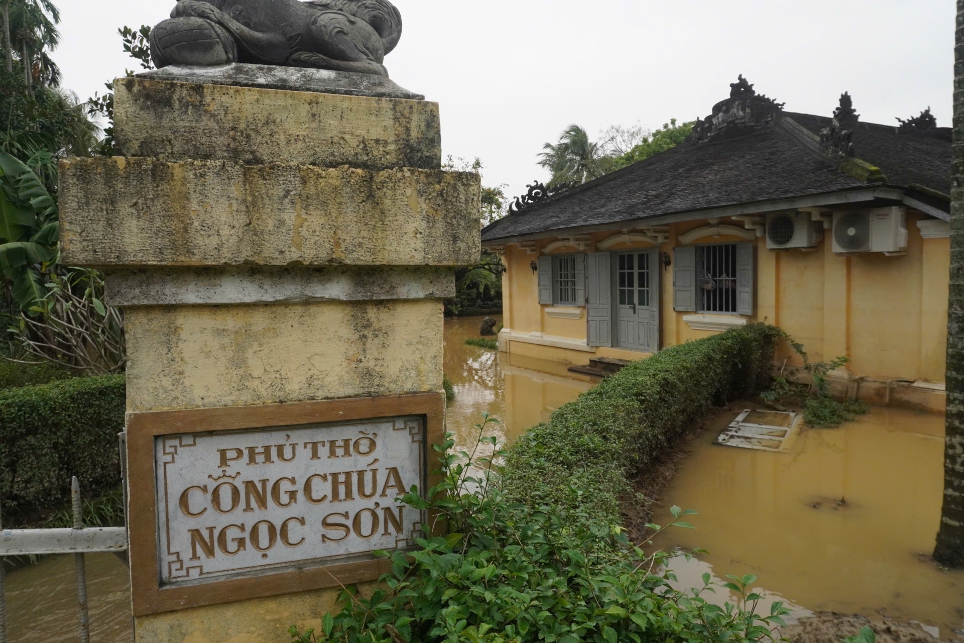 Nước ngập không gian nhà vườn của Phủ Công Chúa Ngọc Sơn lúc 16h ngày 17/11. Ảnh: Quốc Anh.