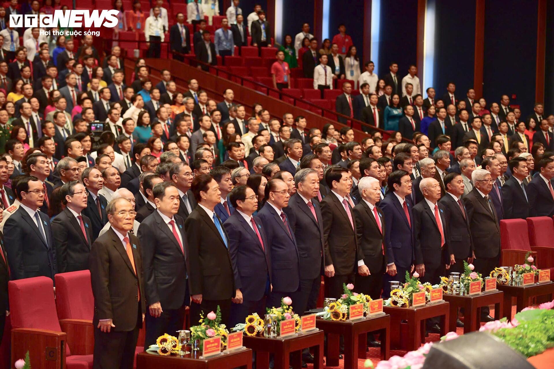 Lãnh đạo, nguyên lãnh đạo Đảng, Nhà nước thực hiện nghi lễ chào cờ tại Đại hội.