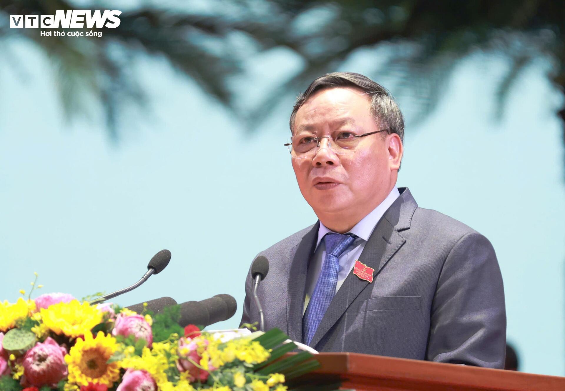 Phó Bí thư Thường trực Thành ủy Hà Nội Nguyễn Văn Phong trình bày Báo cáo chính trị Đại hội đại biểu Đảng bộ TP Hà Nội lần thứ XVIII.