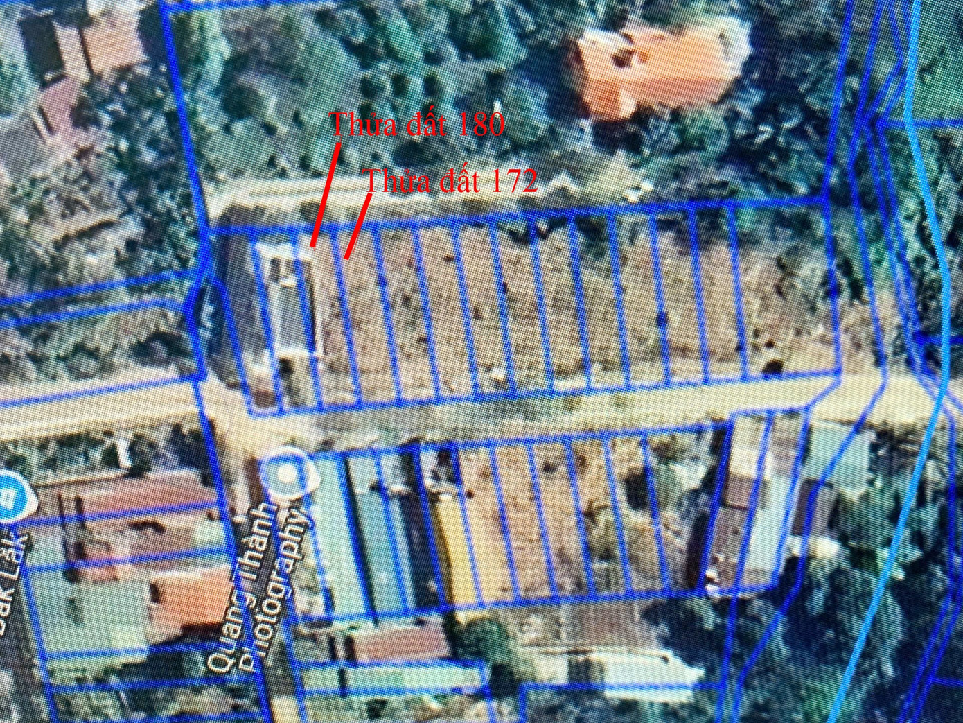 Nhìn theo bản đồ vệ tinh, được cập nhật trên ứng dụng Guland (Ứng dụng tra cứu thông tin quy hoạch sử dụng đất trực tuyến) thì thửa 172 của anh Lê Quang Hải nằm vị trí thứ 4 (tính từ trên xuống), dưới thửa 180 của ông Nguyễn Văn Ban (thửa số 3). Mỗi thửa có mặt tiền 5 m, dài khoảng 23 m.