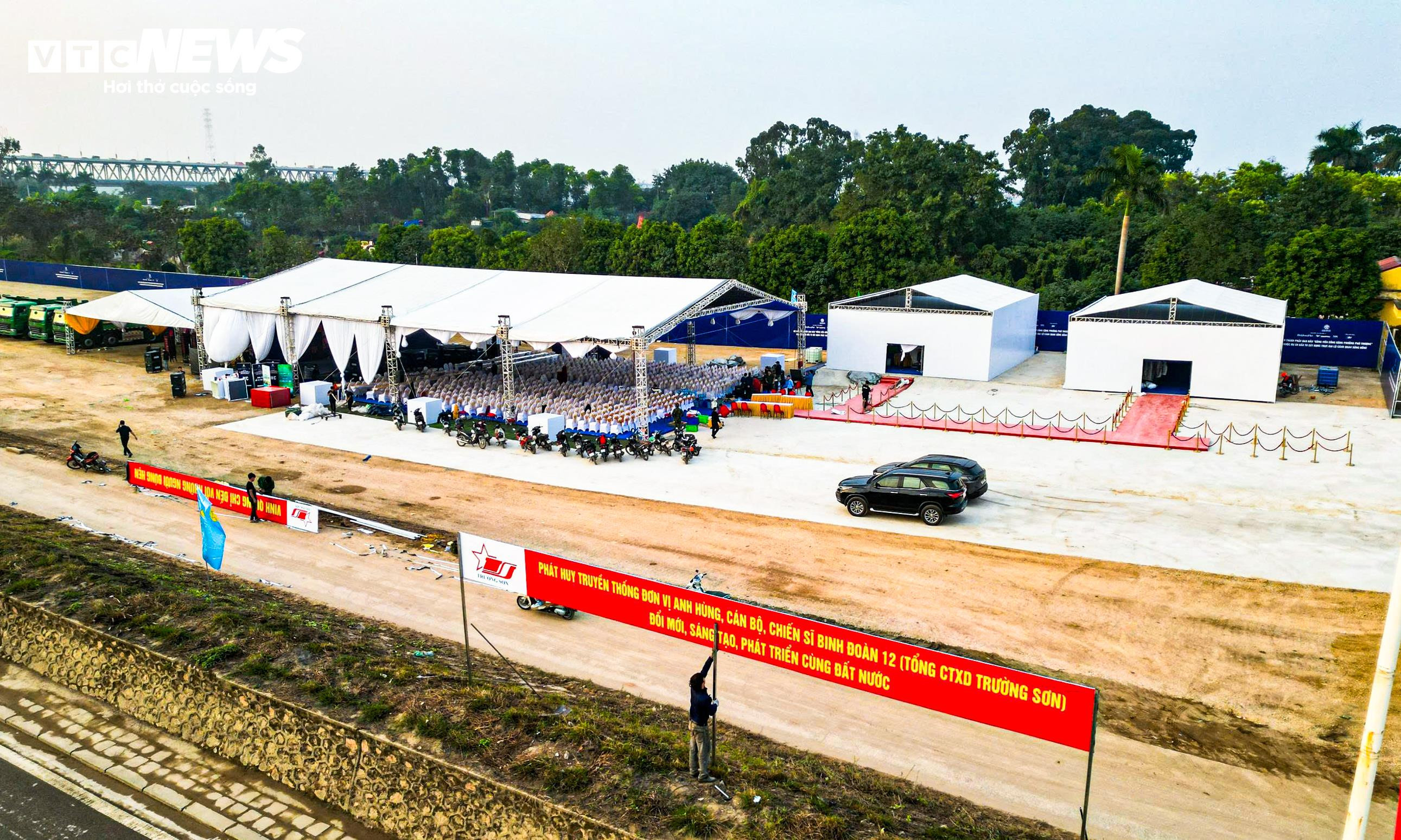 Ghi nhận của PV Báo Điện tử VTC News ngày 18/12, tại khu vực gần chân cầu Thăng Long, lực lượng chức năng đang khẩn trương chuẩn bị cho lễ khởi công trục đại lộ cảnh quan sông Hồng. Nhiều máy móc, thiết bị cơ giới cỡ lớn được tập kết gọn gàng ven bãi sông, sẵn sàng cho giai đoạn thi công đầu tiên.
