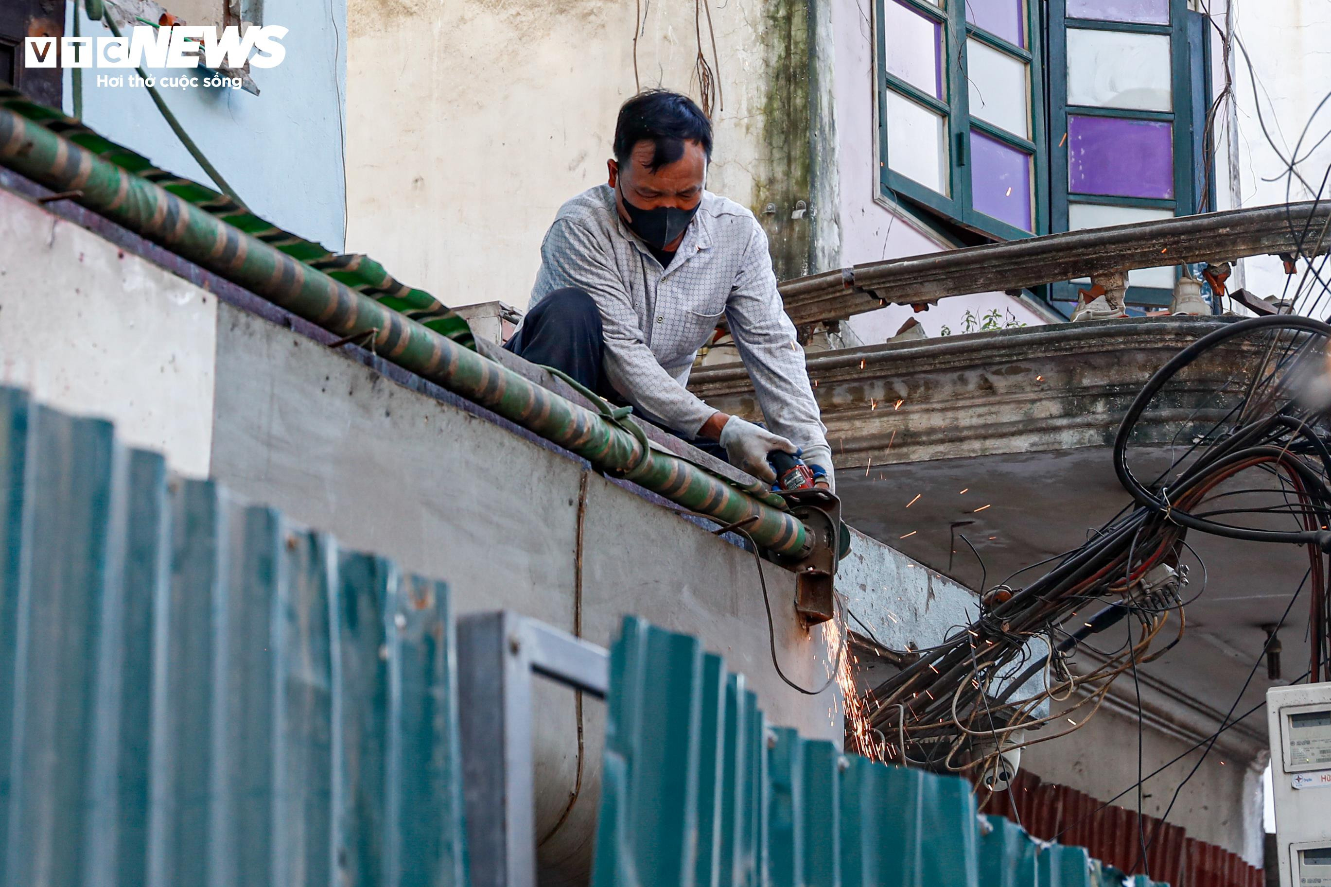 Trong khi đó, một số hộ dân vẫn cố bám trụ phía sau lớp hàng rào tôn vừa được quây kín.