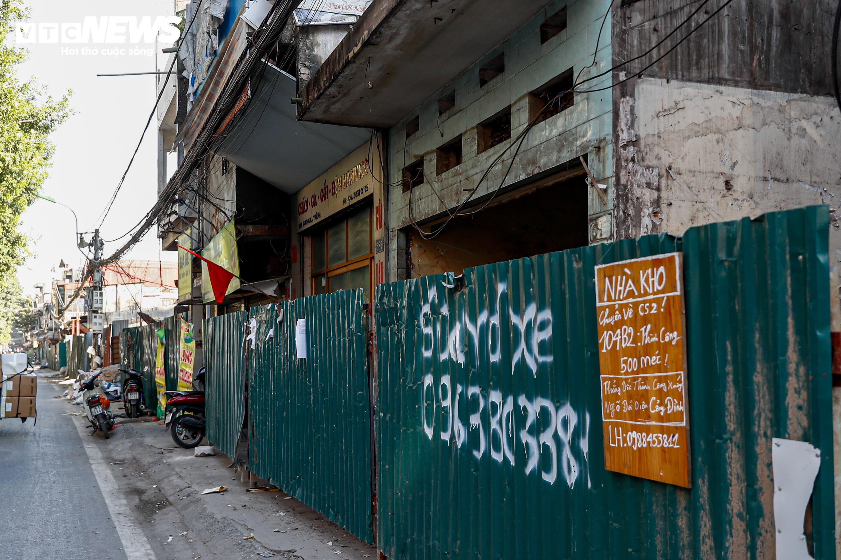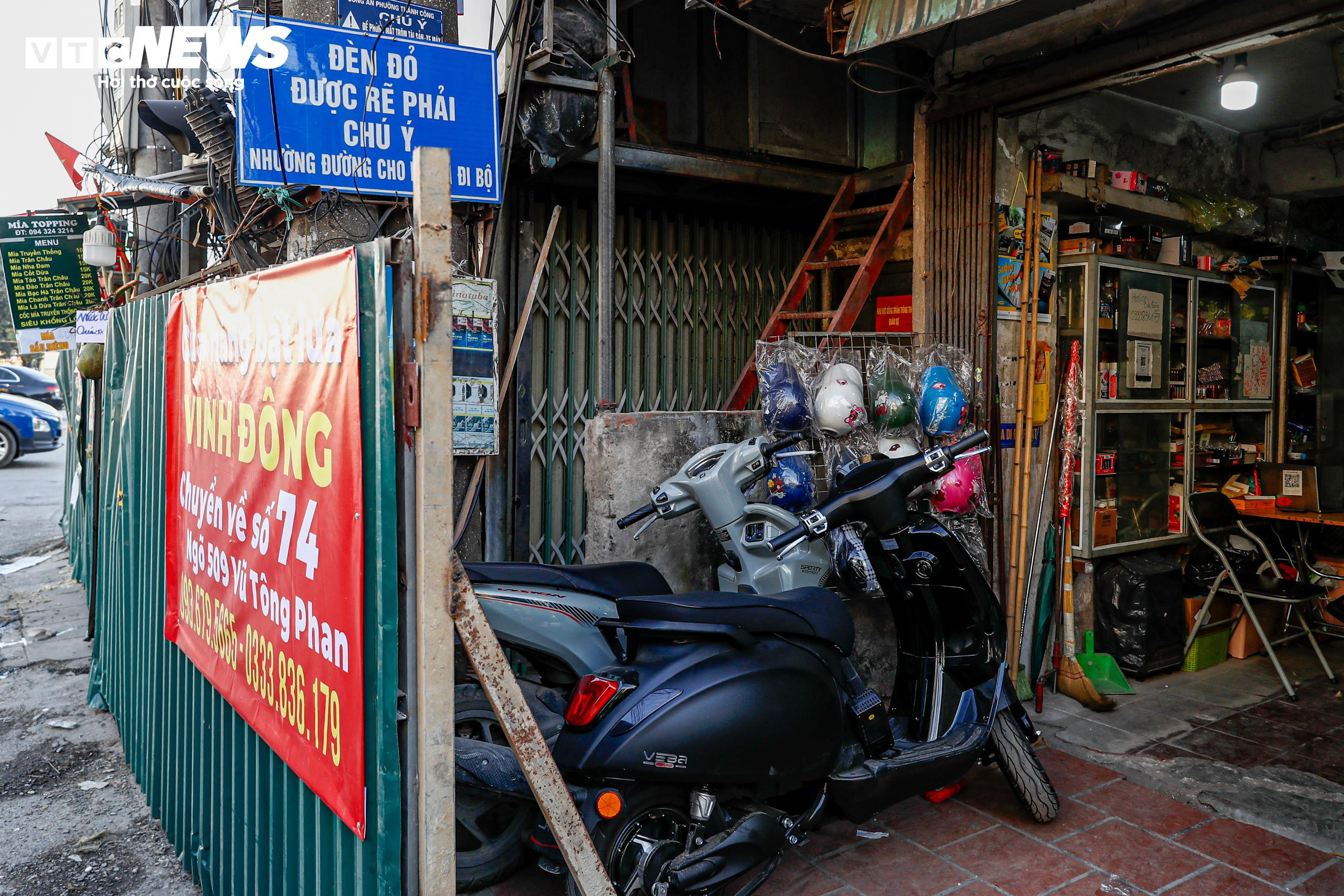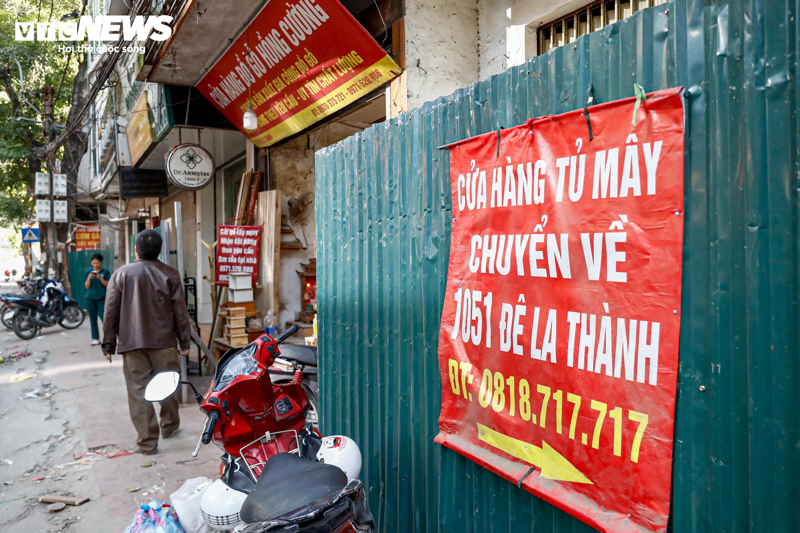 Nhiều cửa hàng trên phố Đê La Thành đã đóng cửa, treo biển chuyển địa điểm, người dân cũng gấp rút di dời tài sản.