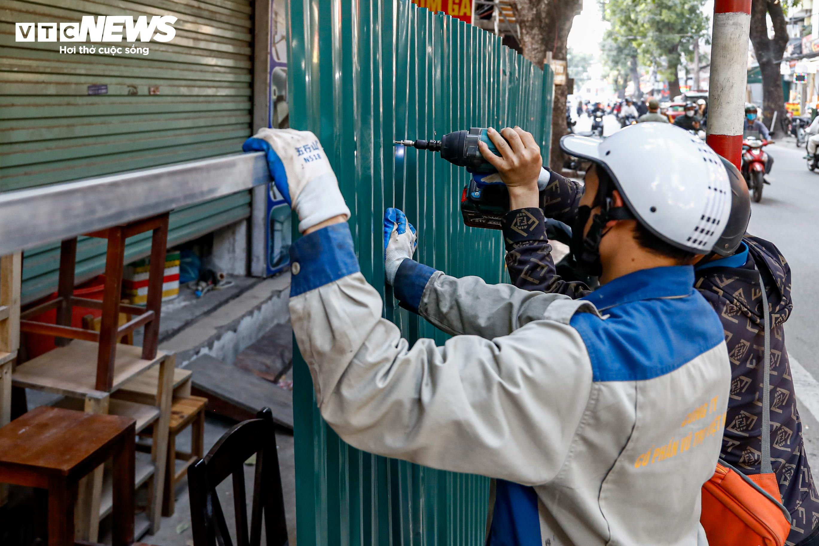 Theo ghi nhận của PV Báo Điện tử VTC News, đến nay, nhiều điểm trên tuyến Đê La Thành đã được quây tôn, chuẩn bị phá dỡ. Trong đó, tại hai nút giao Láng Hạ và Nguyễn Chí Thanh, công tác phá dỡ đang được triển khai khẩn trương.